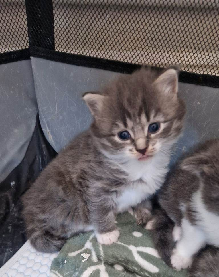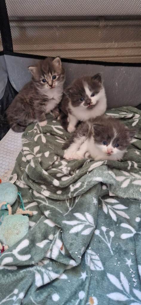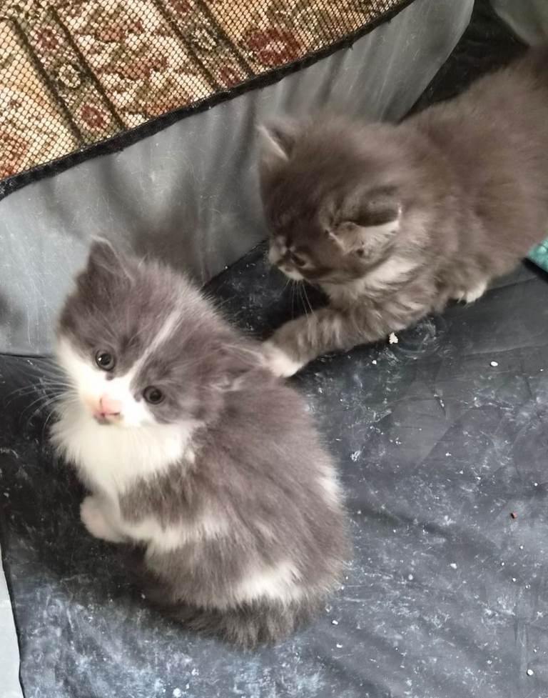 Posting for 11+ years3 gray/white fluffy kittens