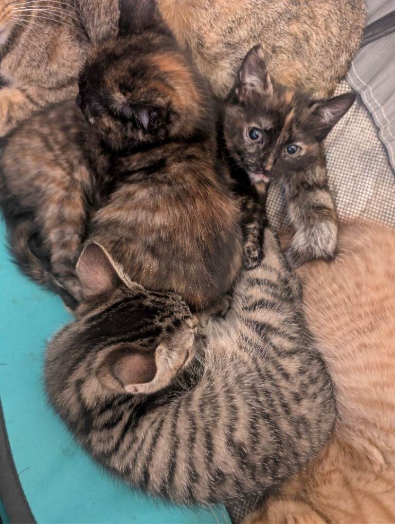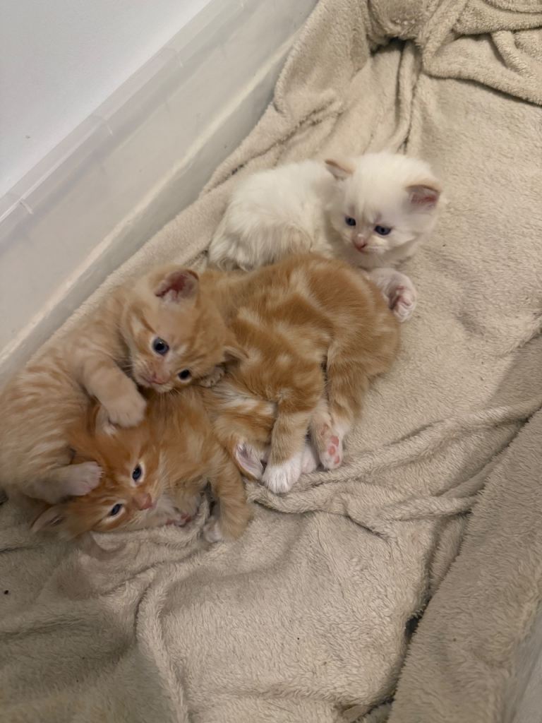 4 beautiful playful kittens, 3 girls and 1 boy, the boy is the ginger kitten. Fully litter trained, eating wet and dry food. Very friendly have been handled lots by myself and children. Used to other animals,my 5 adult cats,dog and guinea pigs and used to household noises. Can not hold without a none refundable deposit due to being messed around. Mammy can be seen in the photos. 9 weeks old,fully weened and ready for there forever home.