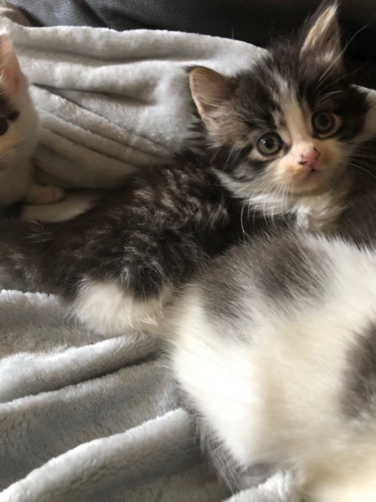 They are on solids and are a lovely litter , calm temperament and also playful . They are also litter trained . Wormed and fleed .