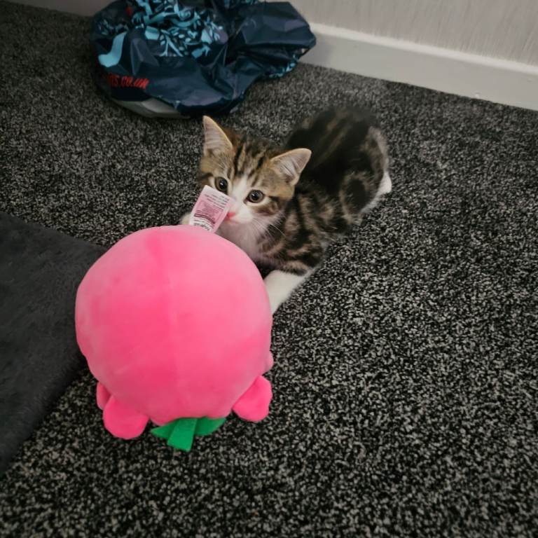 Special has got his to back legs pointing out due to birth, he can do everything the other kittens can do he bounces about like a kangaroo when he plays he can walk run climb. All eating solid and wet food, all toilet trained. They have been fleed and wormed.