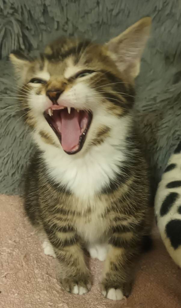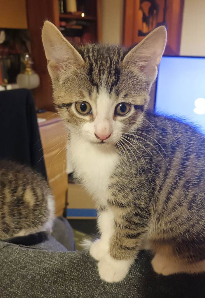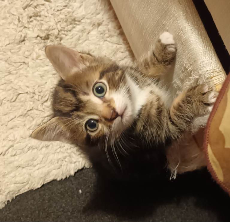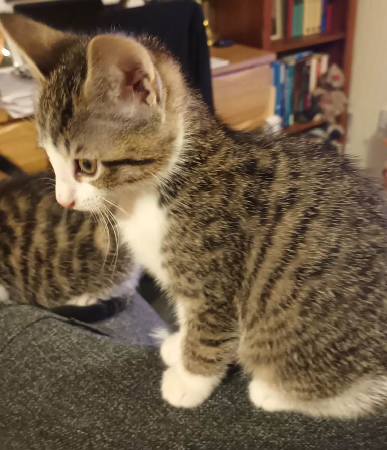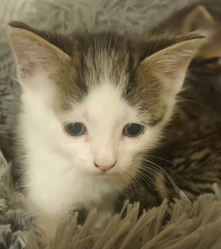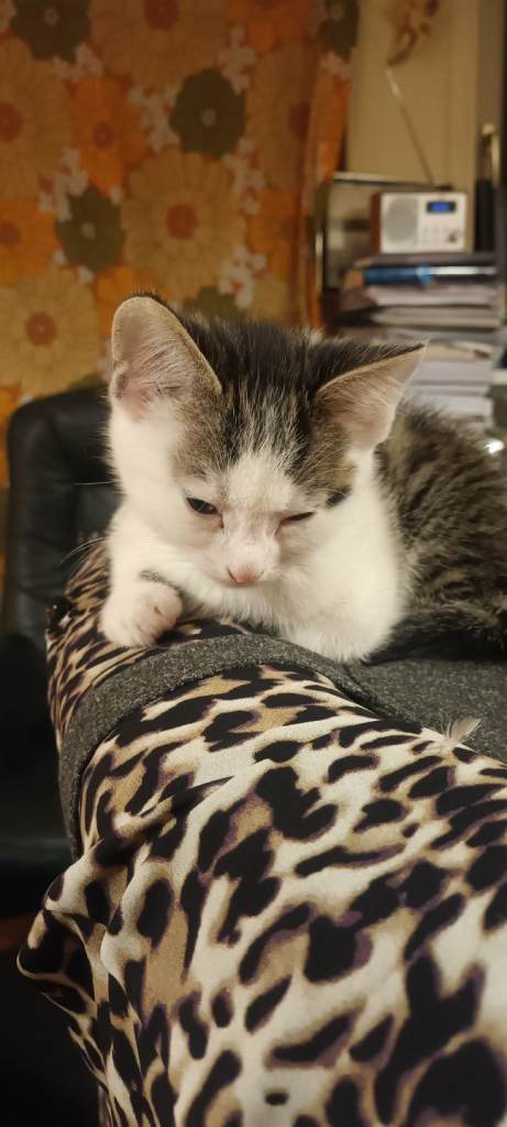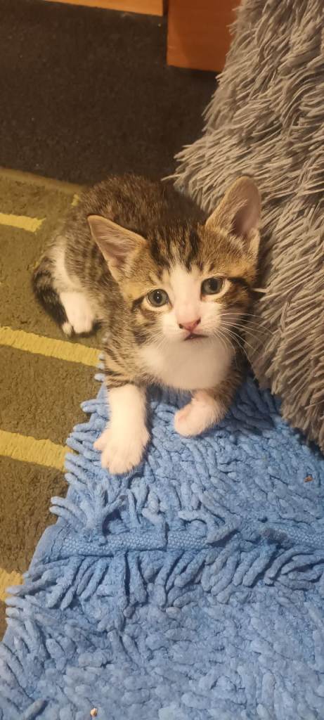 8 weeks old. Eating Whiskas kitten wet food and dry food. Love Tiger kitten milk. Using litter tray. Very active, playful, and healthy.