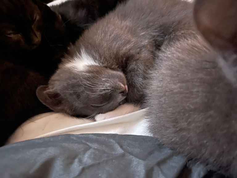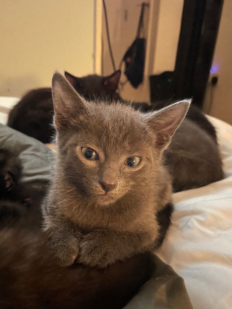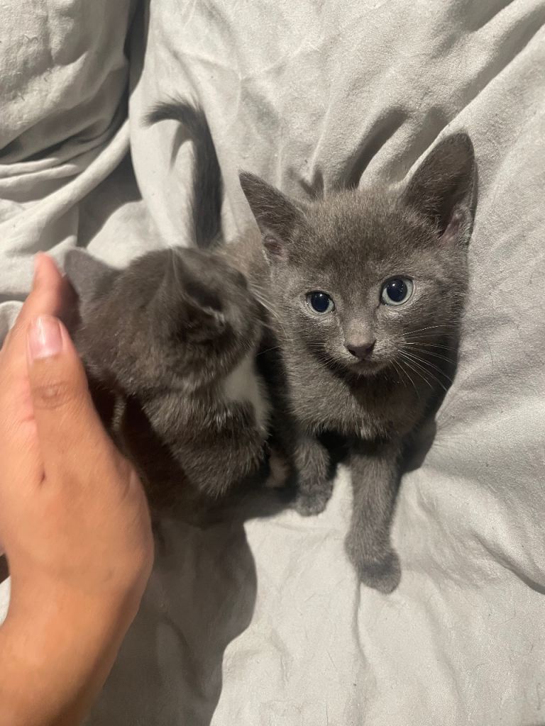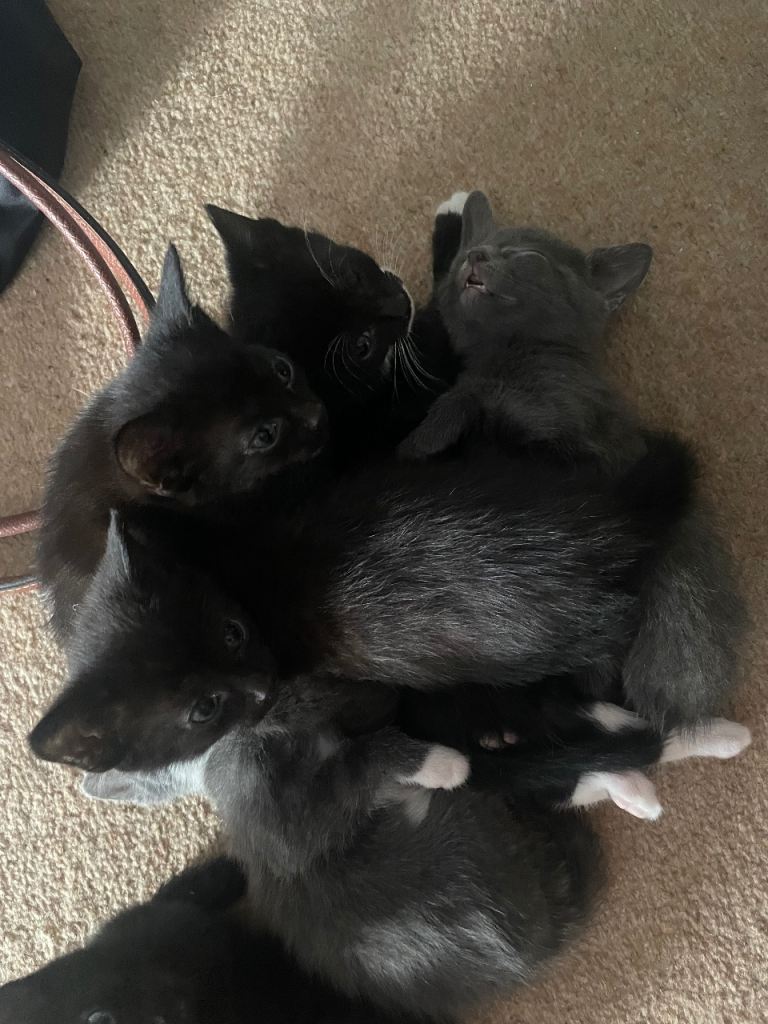 Posting for 3+ years6 kittens - 2 grey, 1 black and white