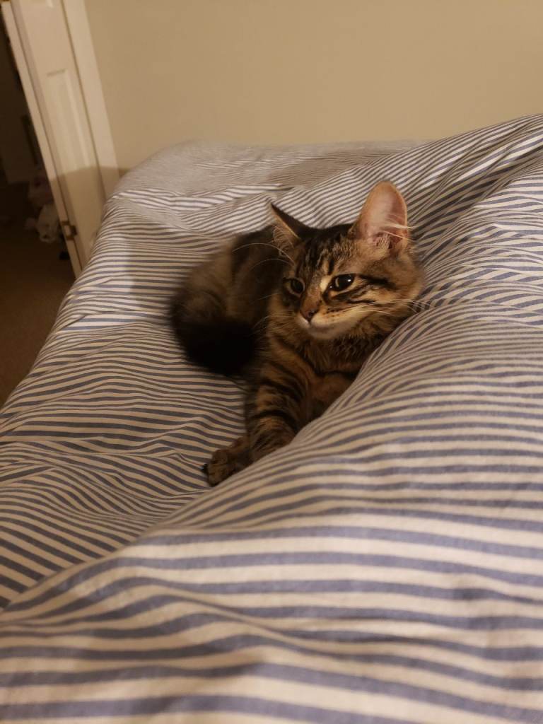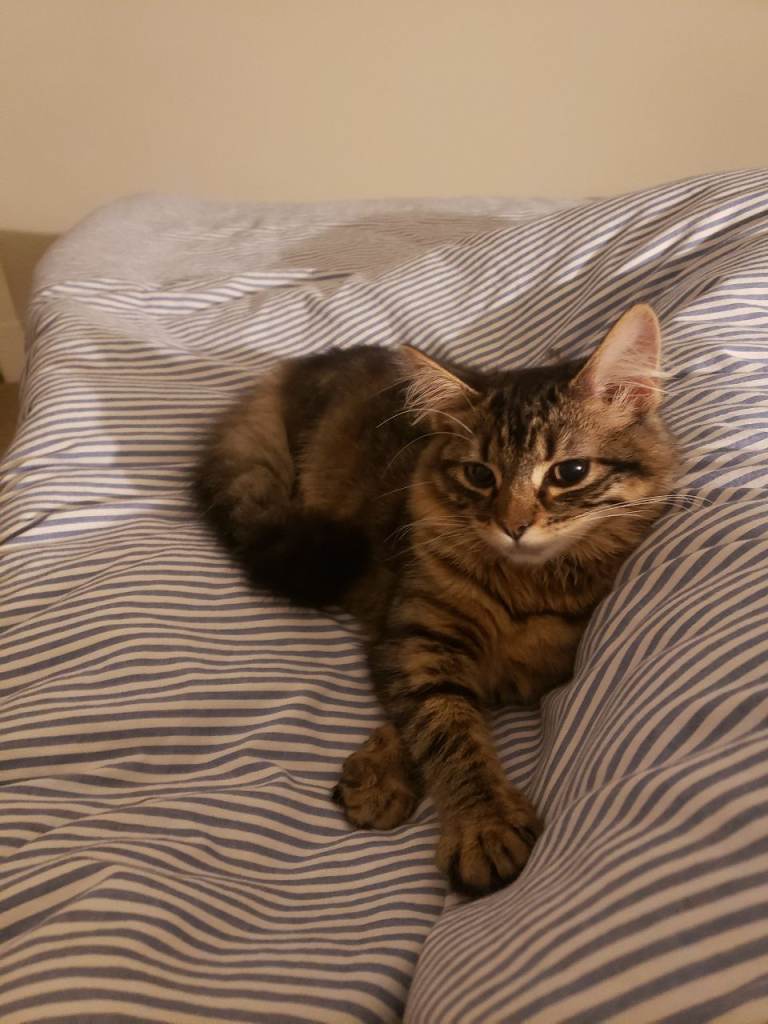 She is a lovely cat. She loves atention but I am unable to give it to her as much as she needs it. She is home cat at the moment and lives with 1 adult and 1 child which is 6years old. She is perfectly fine with the children. She is very smart cat. I can not say anything bad about her but I feel with her energy she would be much happier with family with garden or with somebody who have another cat.