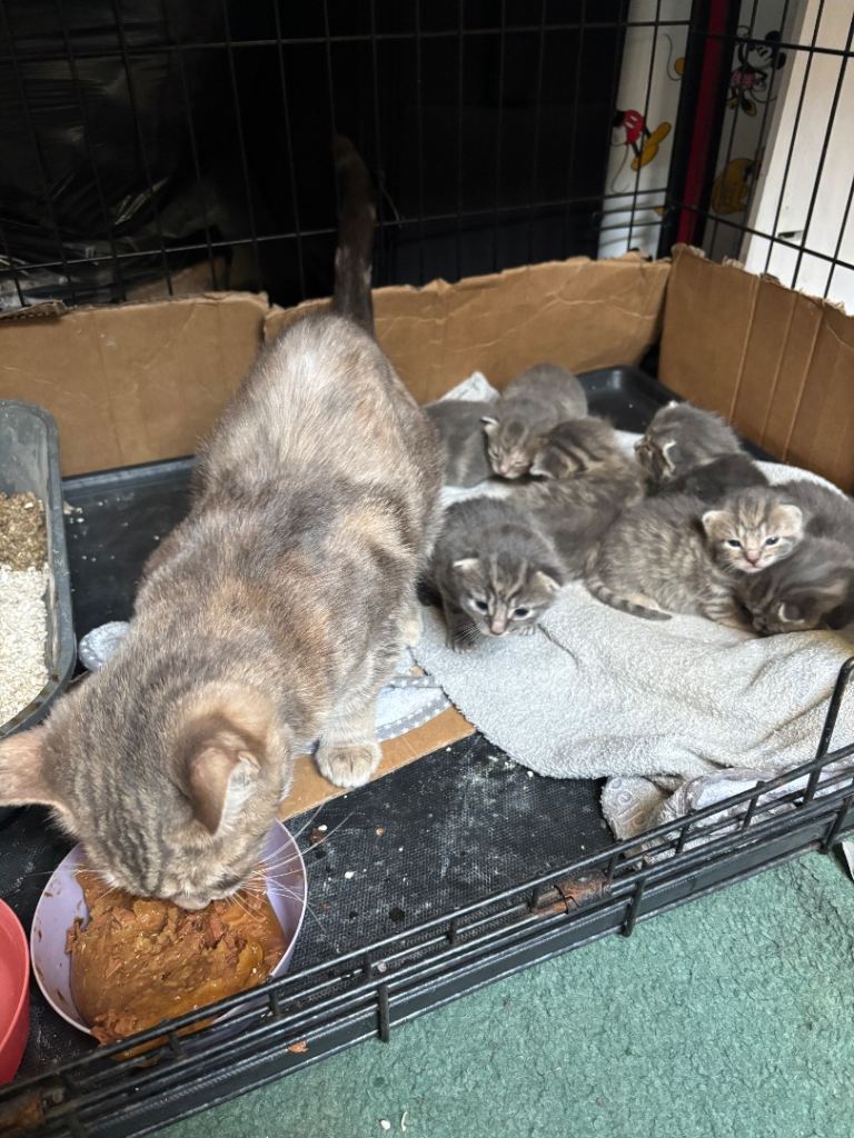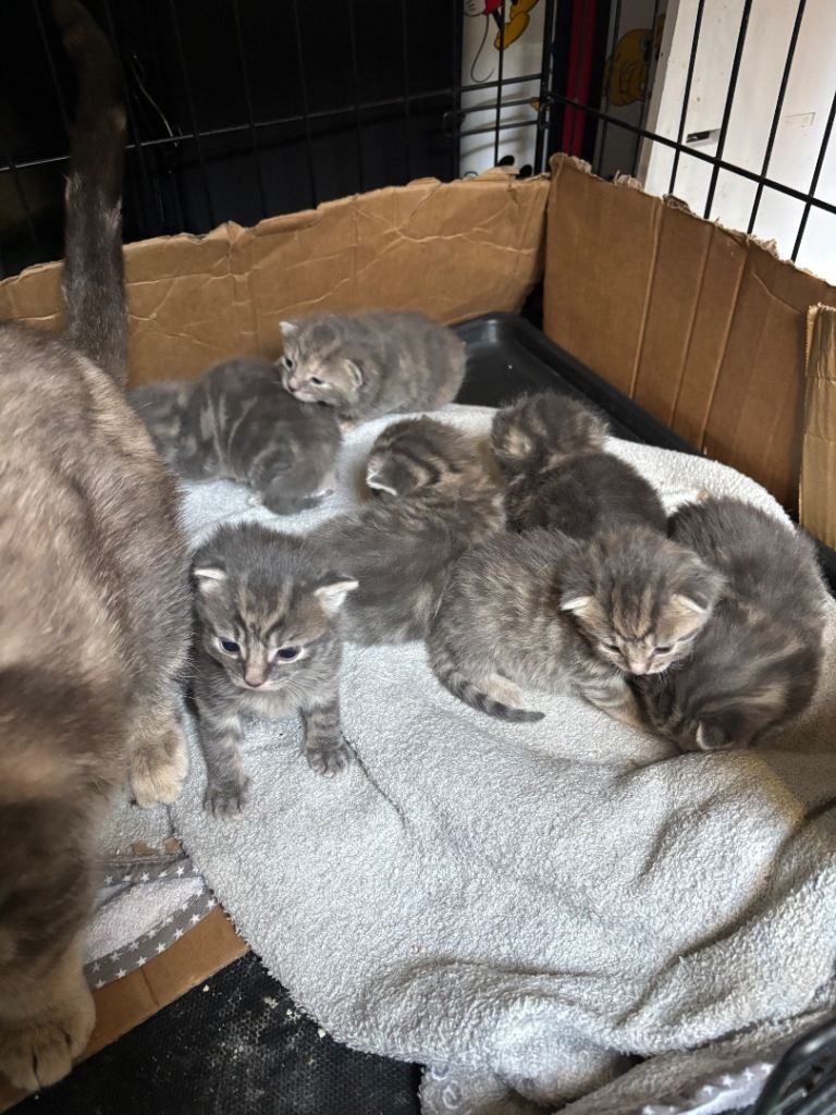 Posting for 5+ months7 little blue and white stripped kittens for sale