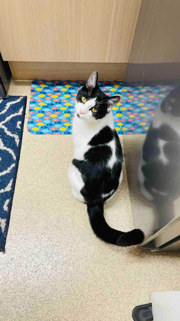Monica is very gentle and definitely a lap cat. She’ll curl right up on you the moment you sit down. And she’s vocal, too, but in a sweet way. She’ll talk to you when she wants attention, when she’s excited, or sometimes just because she wants to be part of whatever you’re doing. She’s the kind of cat who follows you around the house and checks in with little chirps or meows.
