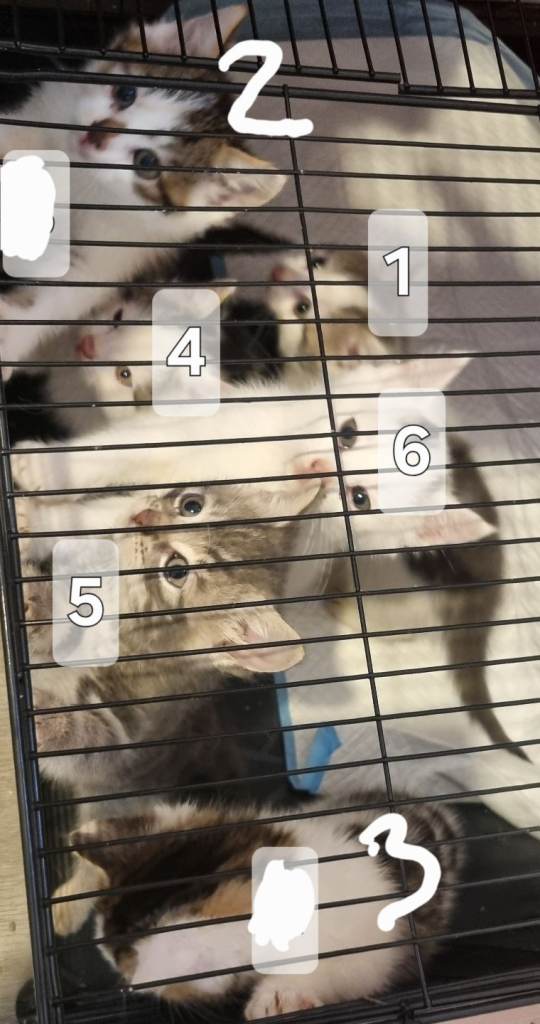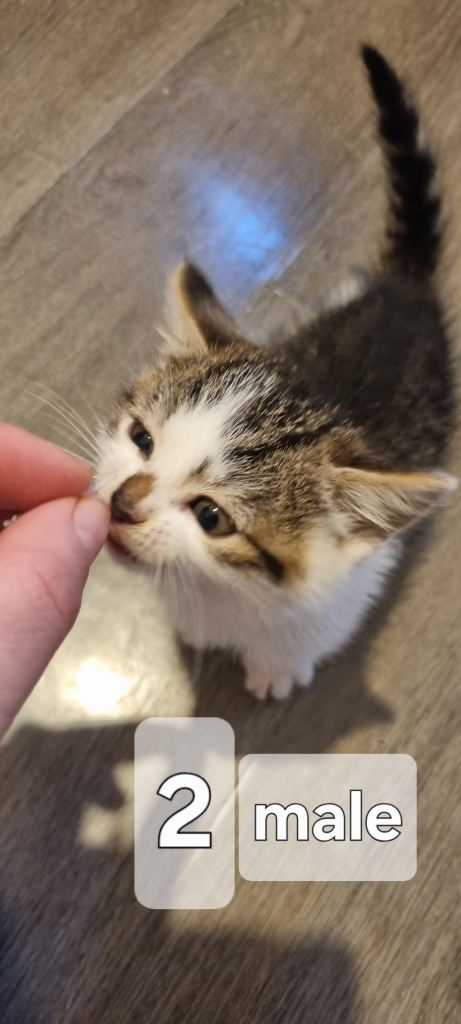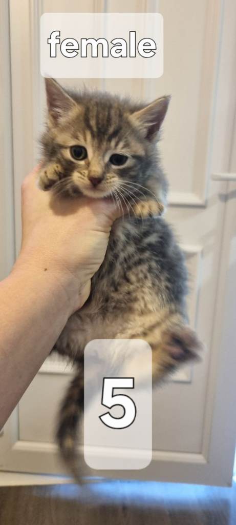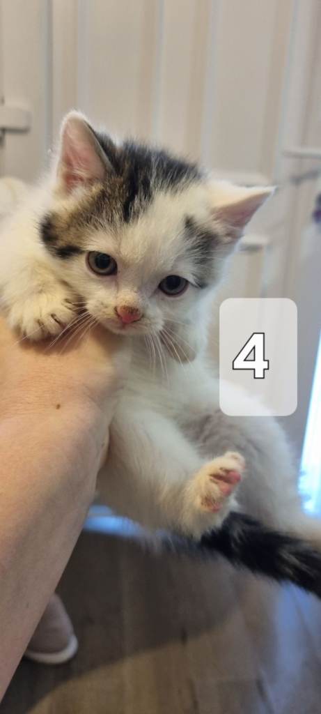 I have 6 kitten, they are 8 weeks old kittens, 2 female which is number 5 and 6. And 4 male kittens. Sorry about the image quality they are always on run, cant really take pictures. They just got 8 weeks old they are not vaccinated or microchipped yet thats why I am selling them for lower price. They are healthy, eating kitten food, kitten milk, and now they started to go into the litter with small accidents, they are still learning. Before you are going to take a kitten, you meed to come and and have a look at them, and sign a paper which indicates that you are checked the kitten before you taken, and you are happy to and promise you gonna take a good care of him her. They can not be taken back once you aggreed to take the kitten!