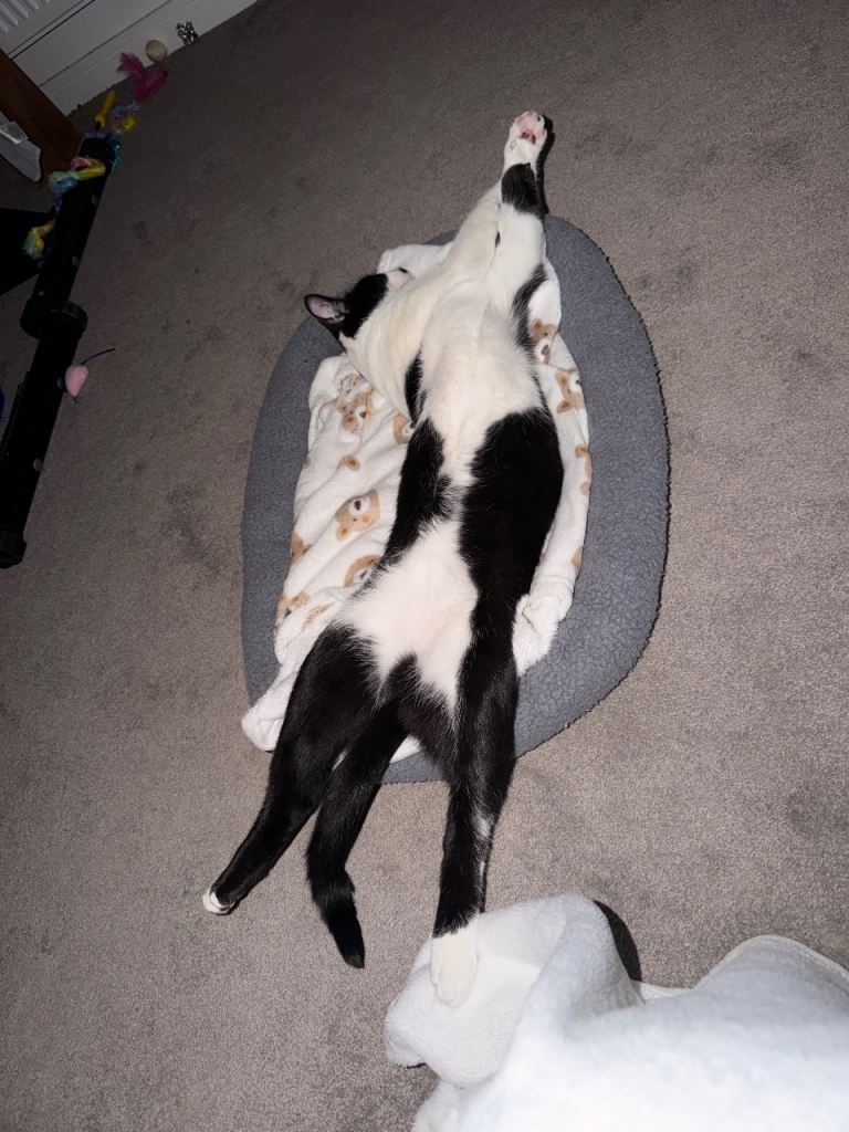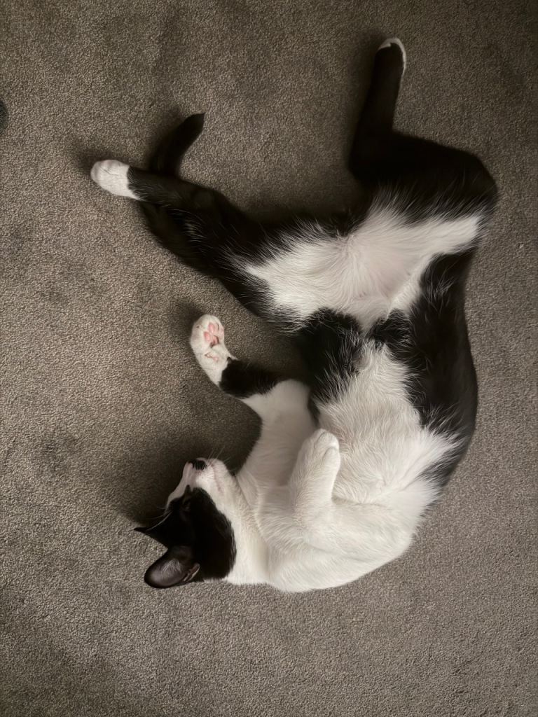 Tommy loves belly tickles, lots of pets, snuggling, cuddling, chin tickles and playing. He is growing very big and need a home where there's space for him to run and play. He needs lots of attention so someone who is at home a lot or part of a family would be ideal. I want him to go to a home with a garden, sheltered garden where or where he can't go into any main roads or. I want him to be safe and have a sheltered garden or not neat main roads. I wanted to keep him but not fare to keep him in my one bedroom flat with no garden. The sheltered garden or not near main roads and having lots of attention is a top priority. He has been chipped, vet checked, neutered and flead/wormed. He's extremely loving and loves sleeping with me at night time. He's growing big and need plenty of space. He can be viewed at my flat with his mum.