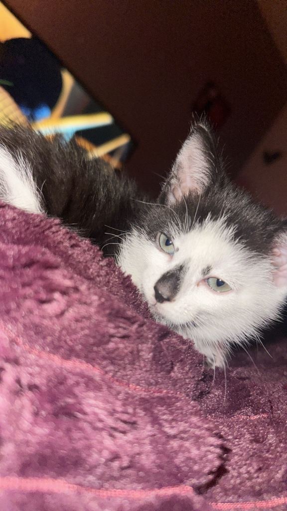 I really don't want to be doing this but I recently got this beautiful female kitten, reason for selling is my older two cats dont getting on with her at all, my two cats are normally really calm and chilled cats but since I got her they have been fighting with each other, iknow the longer I leave it the bigger bond am gonna get with the new kitten it isn't fair on any of them as am having to separate them. The new female kitten is currently in my bedroom with me all day as I don't wanna leave her on her own as she's still so small she has a great little bouncy character loves her little cuddly toys her zoomies are the cutest, she's fully litter trained I have her on Sheba kitten and go cat biscuits she isn't to keen on water so iv had her on whiskas kitten milk,