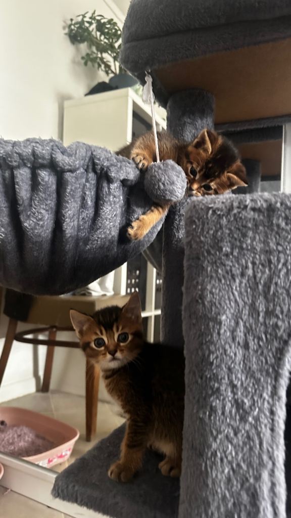 Our adorable Queen had a litter of 4 kittens born on 15 November 2025 . 3 girls and 1 boy, they are playful and healthy babies. They are raised in a family home with kids and dogs and are super friendly and loving.