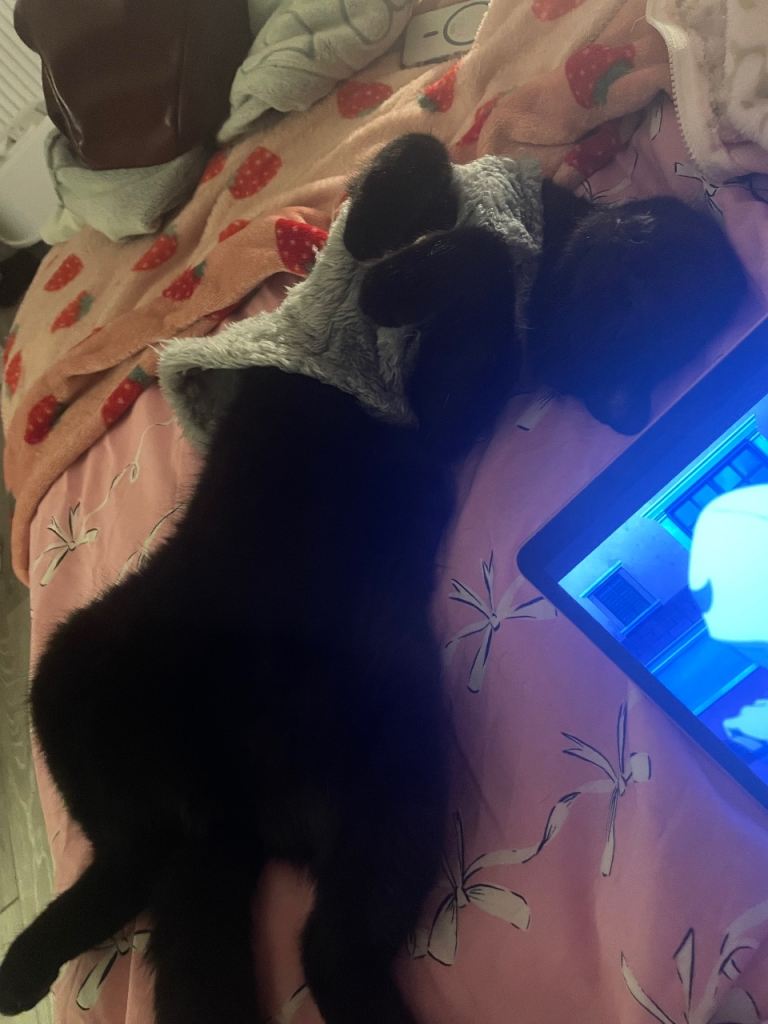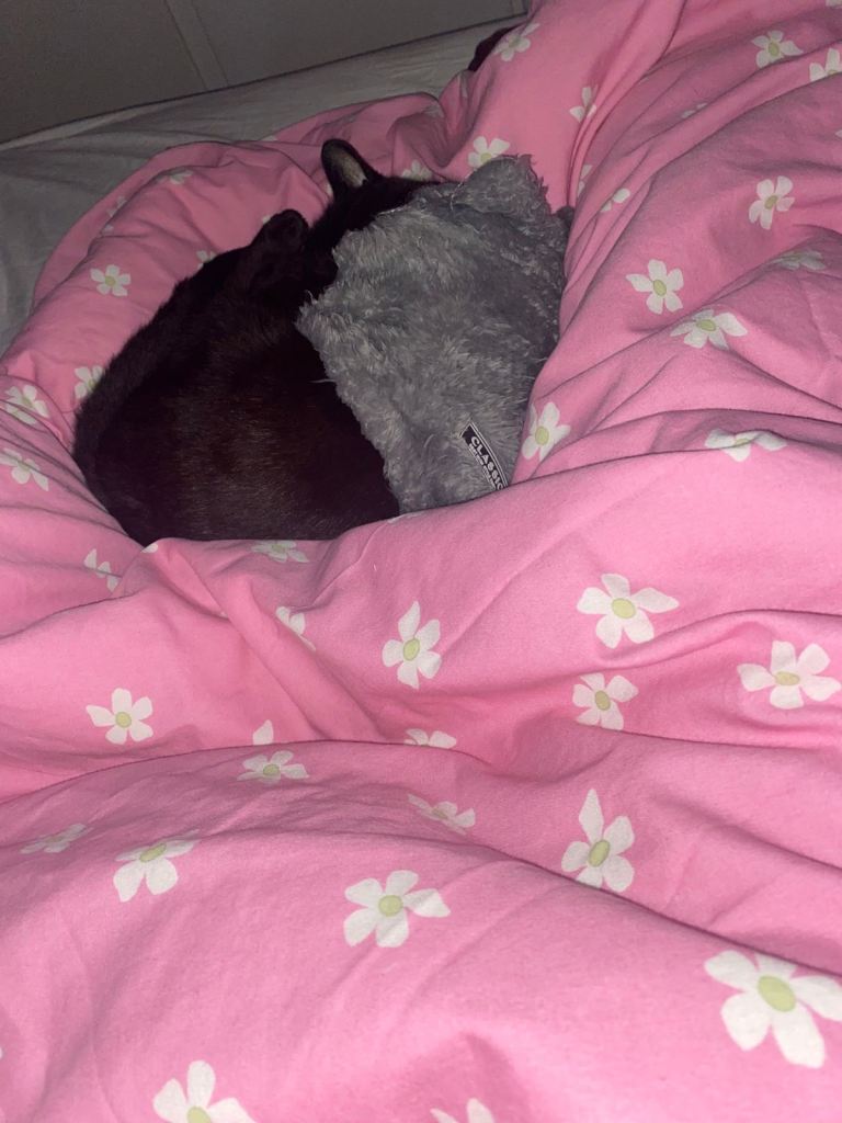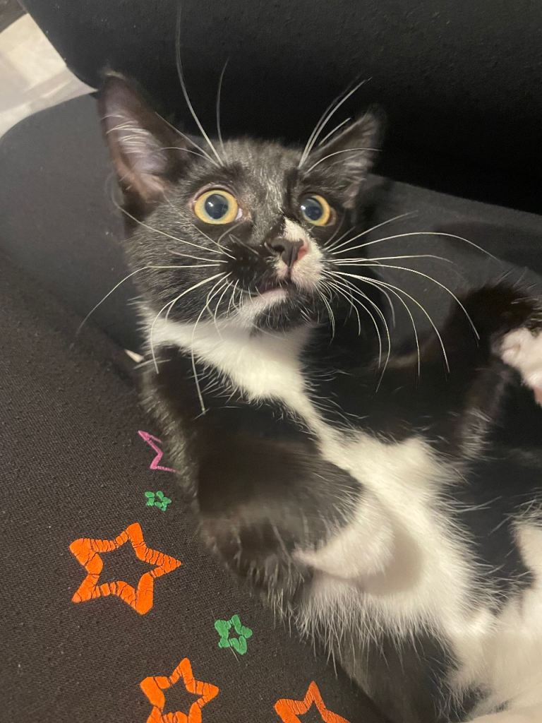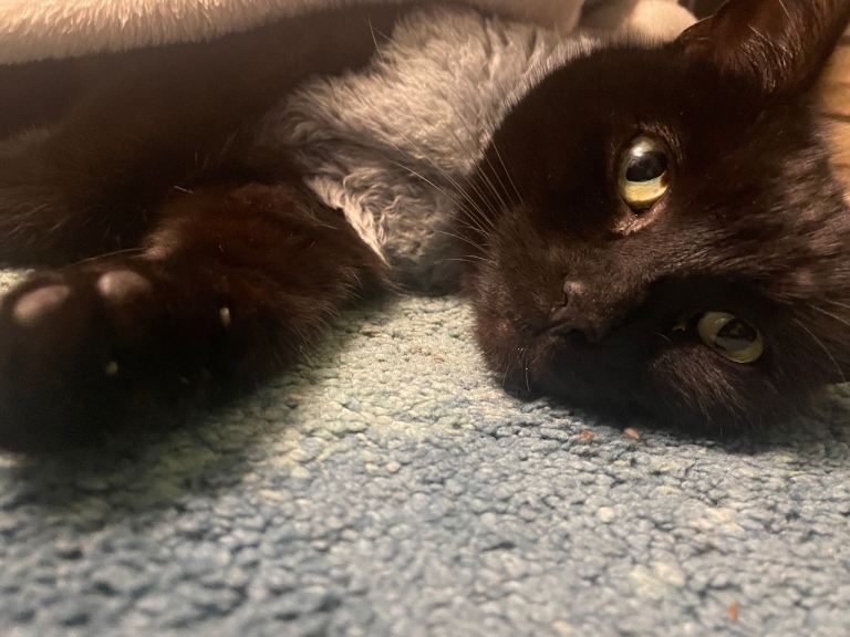 I’m going to uni this year so I want him in a home that doesn’t have little kids, or at least a home with calmer kids if possible. He loves dressing up and he is very cuddly, he goes outside but comes back when you click your fingers because that means he’s getting food/snacks. If you click your fingers he will expect food.