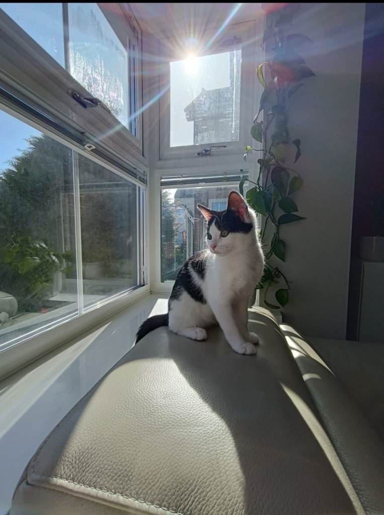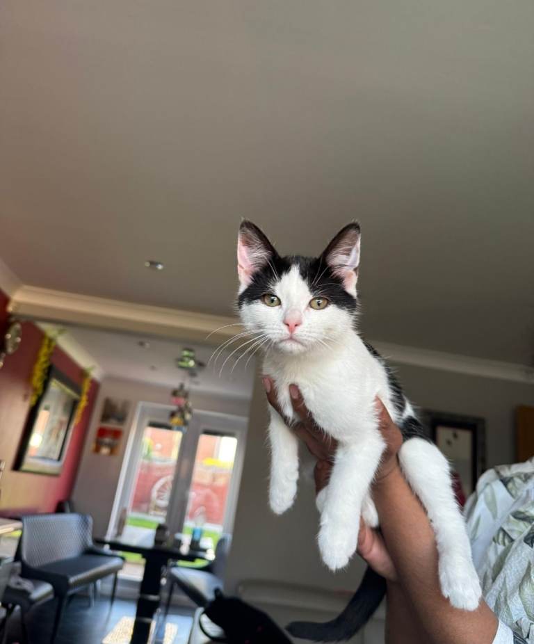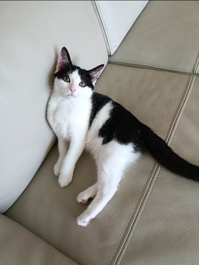 Posting for under a monthAdorable black and white kitten for sale