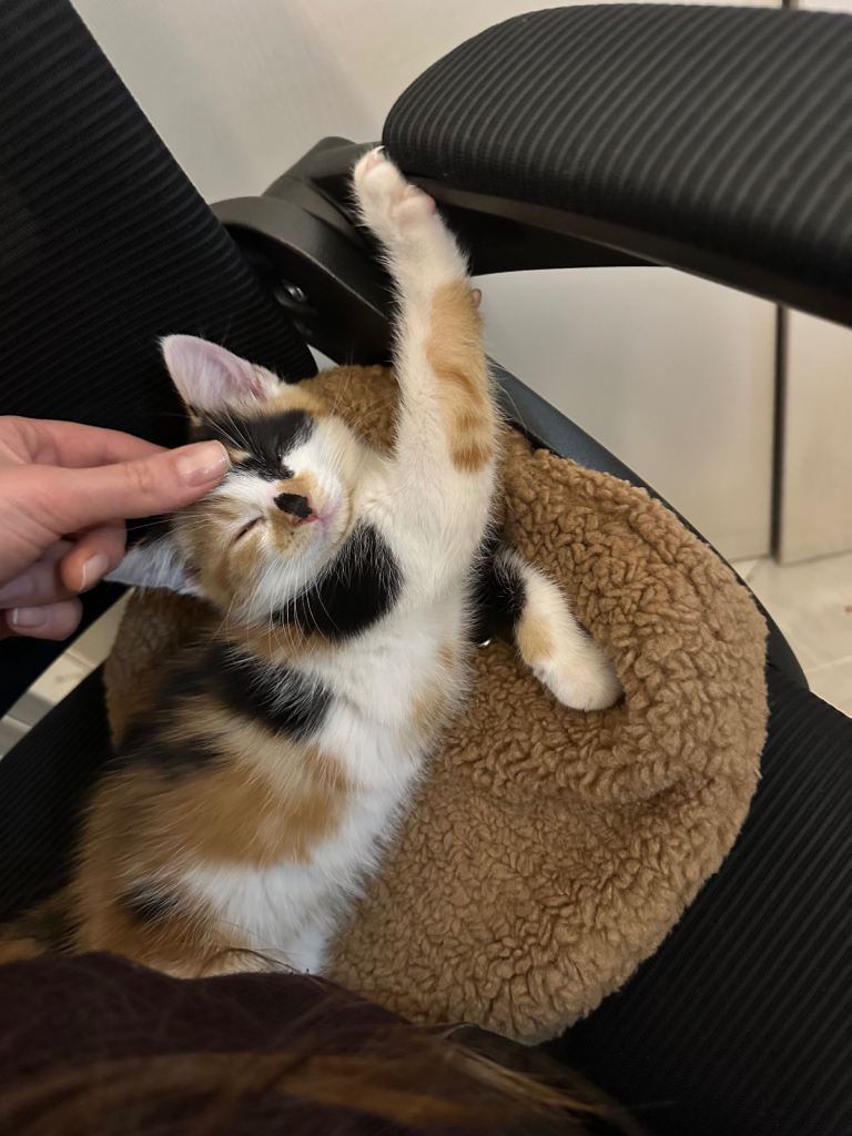 I’m moving, so sadly I need to find a loving new home for my kitten. She is very affectionate and playful. I will include all her belongings, such as her litter tray, toys, and fluffy bed.