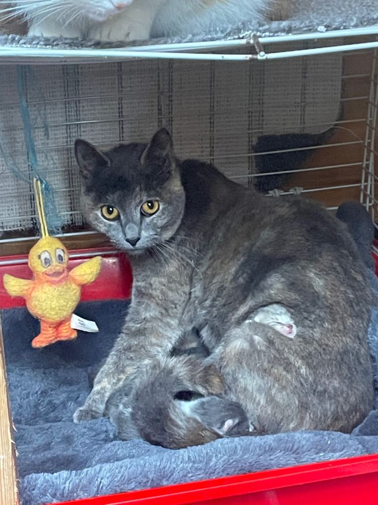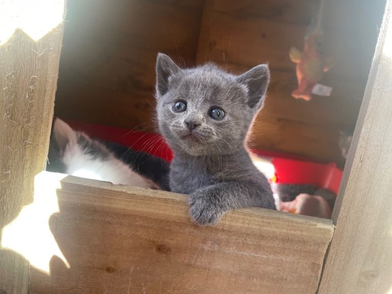 Mum is a British Shorthair × Russian Blue.