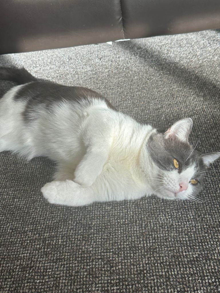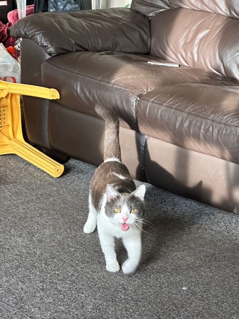 WHITE/GREY/BROWN CAT FOR REHOMING 🐱