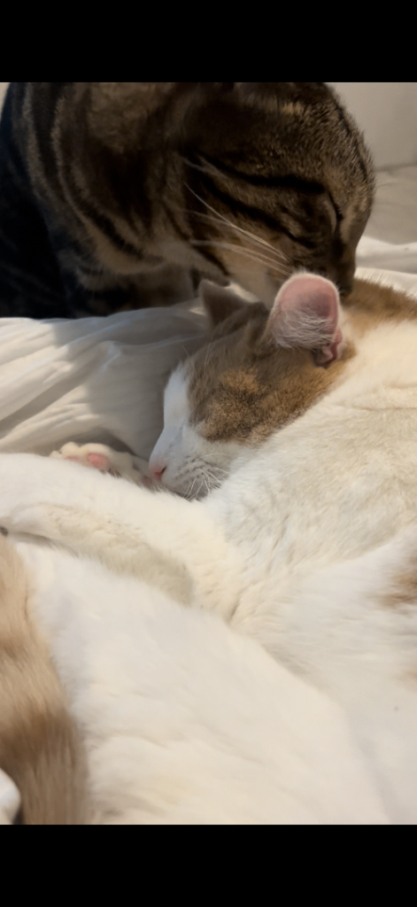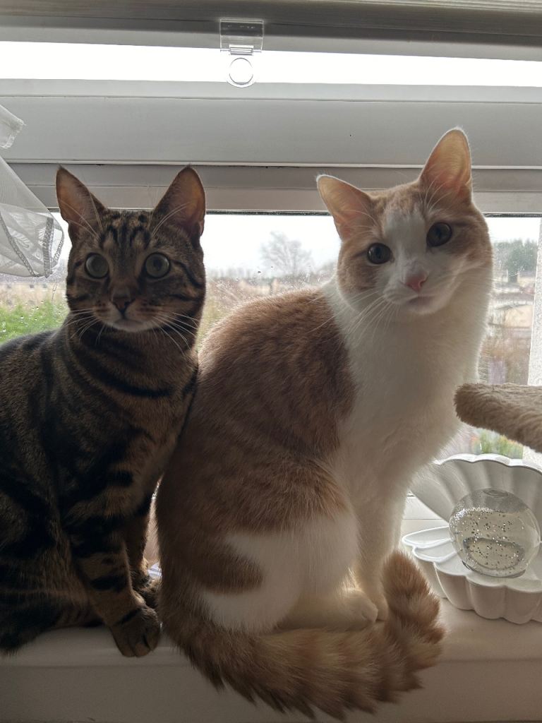 Kasper is the white and ginger cat he was born may the 25th 2022, is Neutered and had his jags. He is the more shy cat out of the two he really enjoys playing and isn't as keen to be outside and is really affectionate when he gets comfortable.