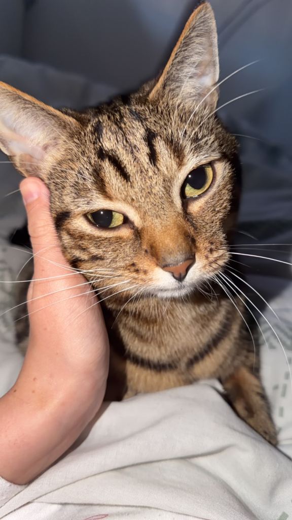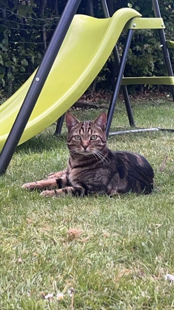 Cannoli is the brown and black tabby cat he was born November 22nd 2021, also neutered and all jags. He is very clingy and affectionate to everyone, loves to be outside I think being stuck in recently has been hard for him.