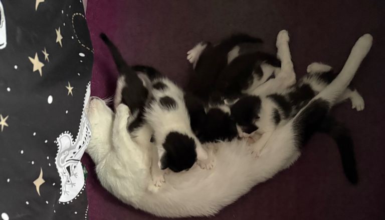Nearly 3 weeks old reserve now. Mum is a tortie and dad is black and white. Fully vaccinated parents.