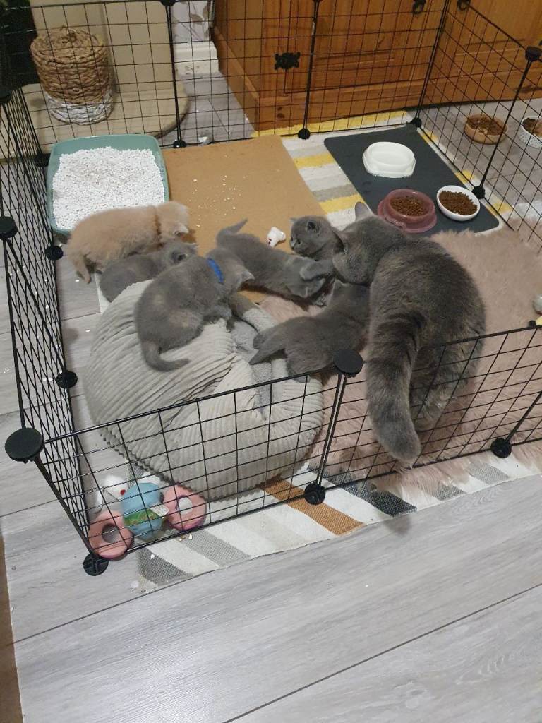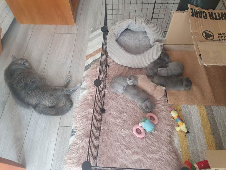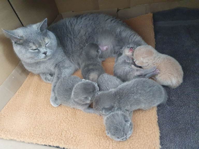 Mum, our cat Tabby is Blue Cream British Shorthair and Dad is Lilac British Shorthair. Dad and Tabbys Mum are GCCF registered, certificates could be shown. Our Tabby is not registered, but she is kept inside only, twice yearly health checked, fully vaccinated, regularly flea and worm treated. Kittens could be seen with her.