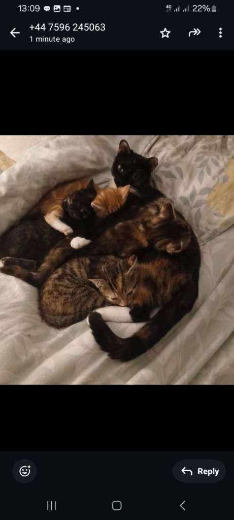Very playful and attractive, raised tortoishell mother breed. Very healthy. The picture shows the mother (tortoishell) with her kittens.