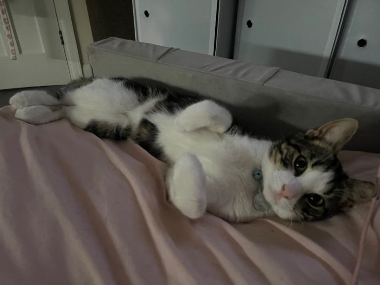 He is 1 year & 3 months old, born 30th october 2024 & is extremely affectionate & loving. He is strictly an inside cat, as he absolutely hates it outdoors & is very frightened of the outside. He has been neutered, he is all up to date with vaccinations, he’s microchipped too, flead every month & wormed every 3. He is toilet trained & has no medical conditions. His name is Bambii, yet responds to Bambino, Bam, Bambelion or babyboy.