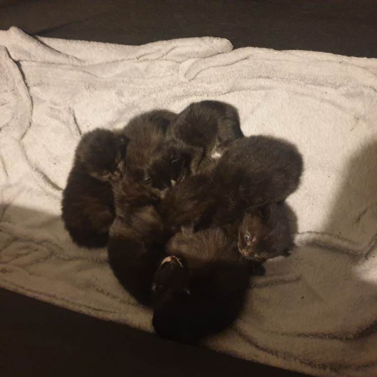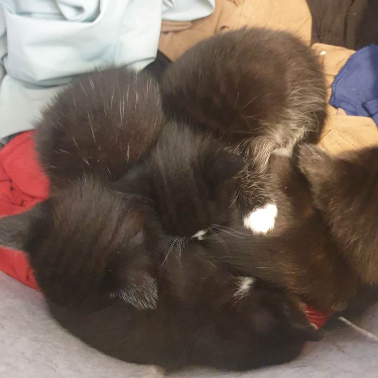 Beautiful black kittens and one white and black