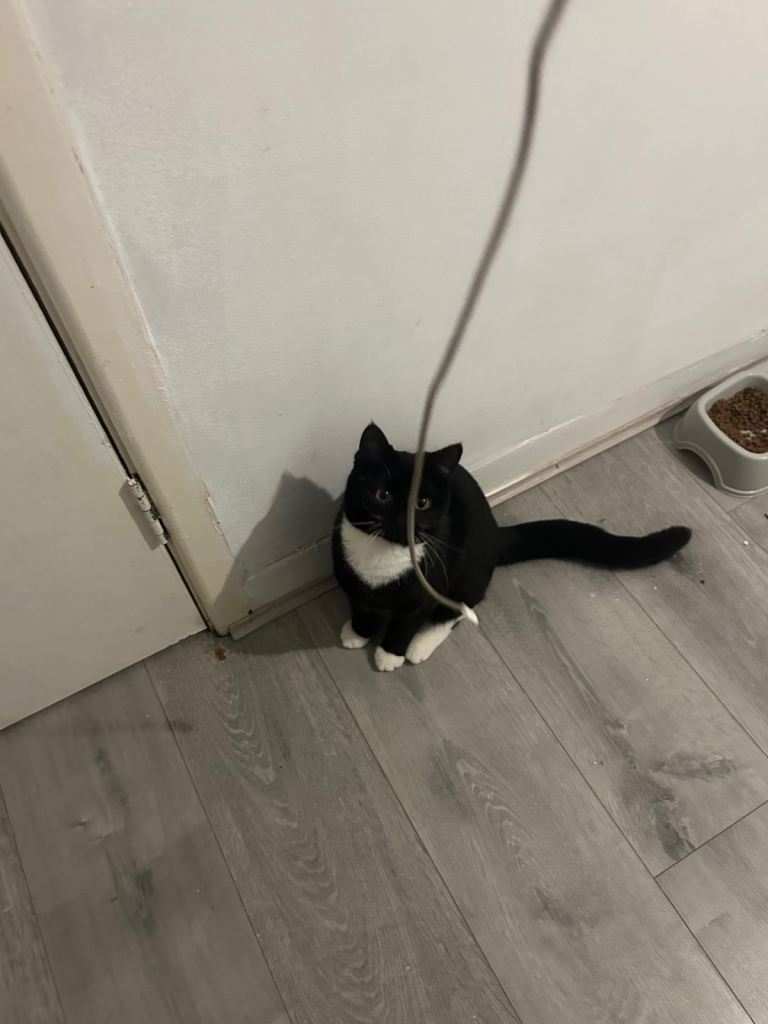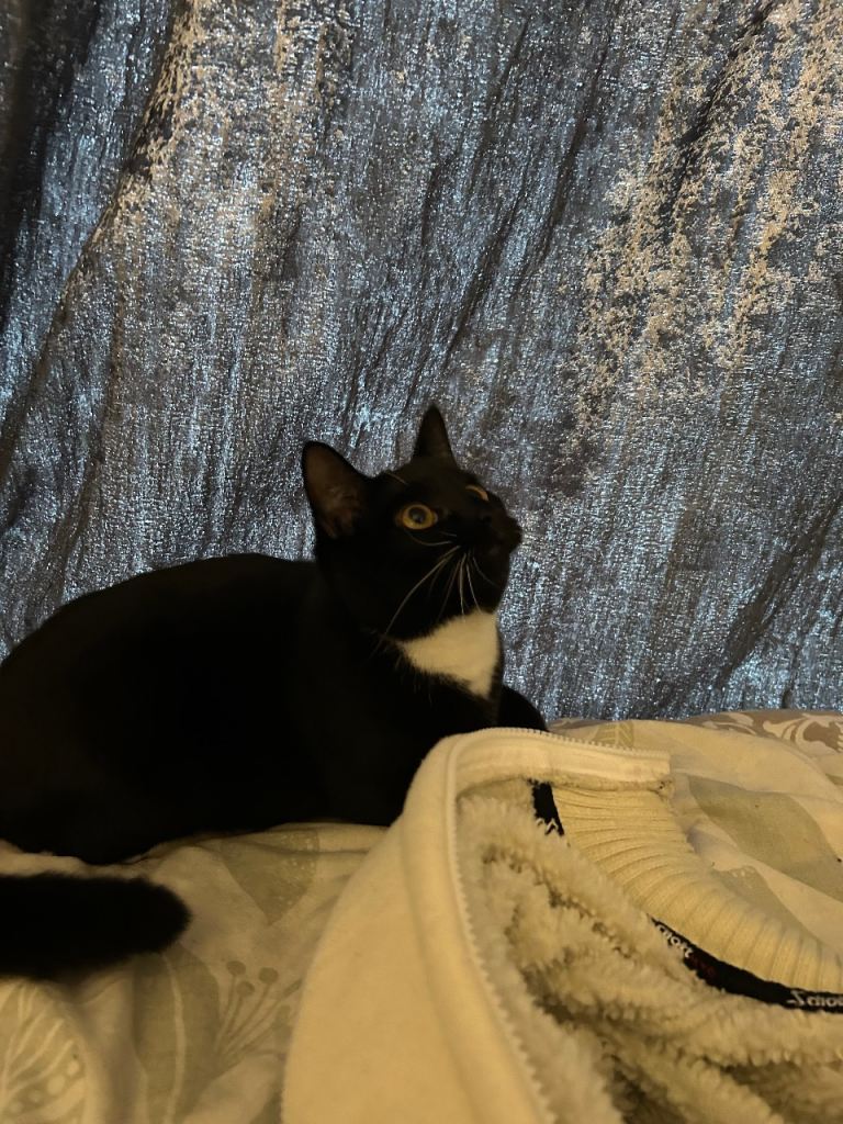 Eight month old cat. She’s fun she’s cuddly.