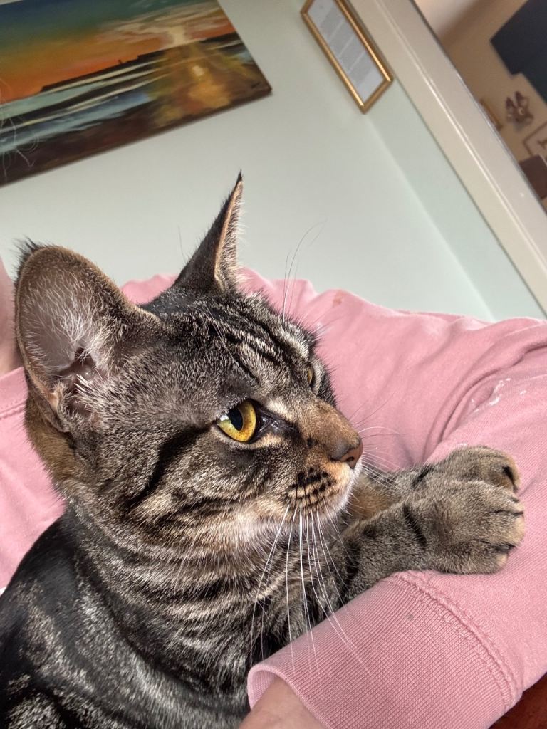 We are having to find the perfect new home for Rose, she is the most gentle, loving little cat, very much loves cuddles and being close, she is very much loved. She has lived with another cat who has already found a great family and lives with dogs but she gets very stressed around them especially when they’re playing, she would prefer to be in a dog free home, or a home with a much older calmer dog with human company and cuddles just for herself. Lives happily with children of varying ages. She is and has always been an indoor cat. Shes to placid for the outdoor world.
