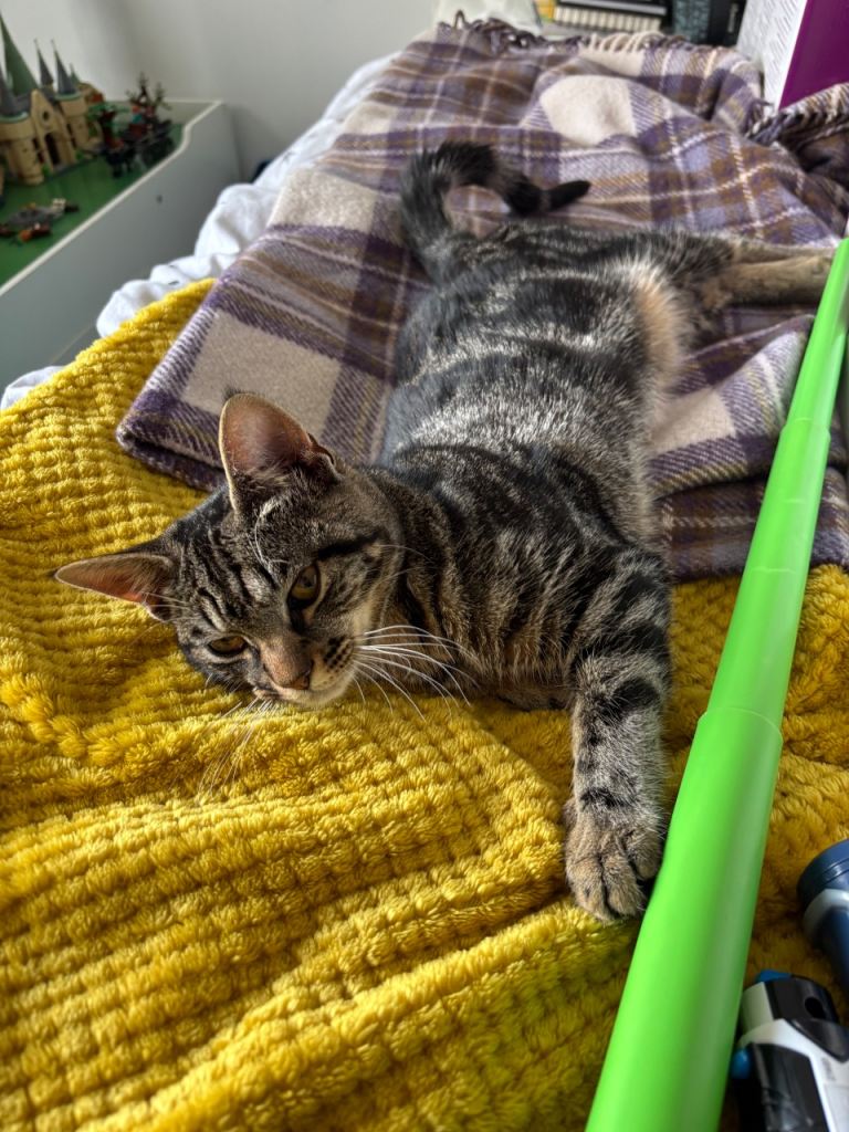 Rose will come with her cat tree (will need a large car with seats down, which she loves, travel carrier, litter tray, scratch ball (her favourite) and posts, toys, food, bowls.
