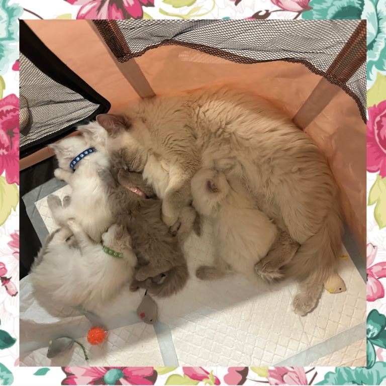 Happy to confirm this little bundle of joy, a litter of 5 which were born on 11/11/2025 (3 Girls & 2 Boys) from my beautiful Lilac Colour Point Ragdoll beauty the mum and the dad which is half British Shorthair and half Blue Colour Pointed Ragdoll which can also be seen during collection.