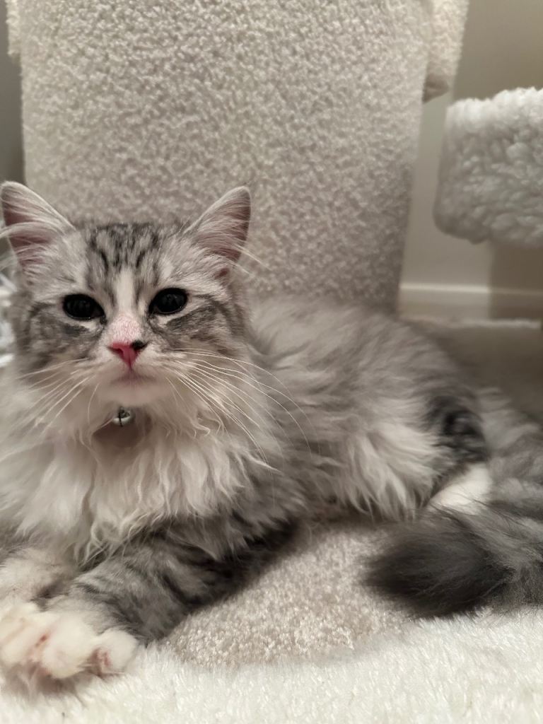 Meet Lychee, a stunning 5-month-old half Ragdoll, half Persian kitten with a sweet and gentle personality. She has a soft, fluffy coat and loves attention, making her the perfect companion for a loving home.