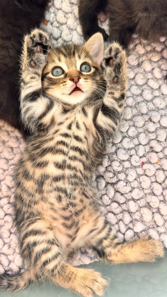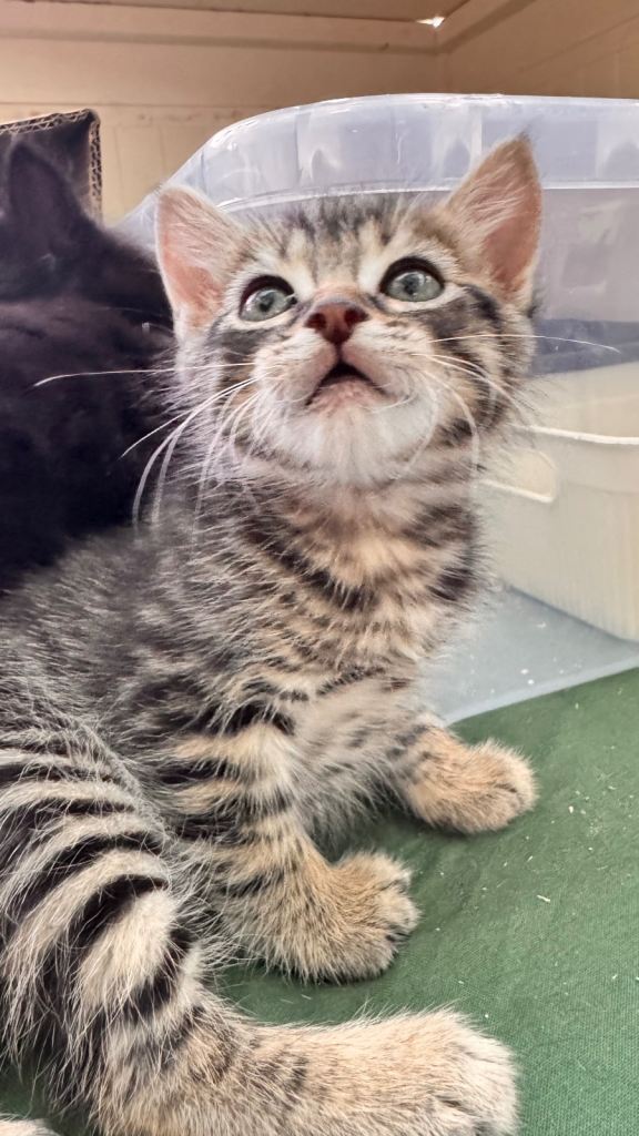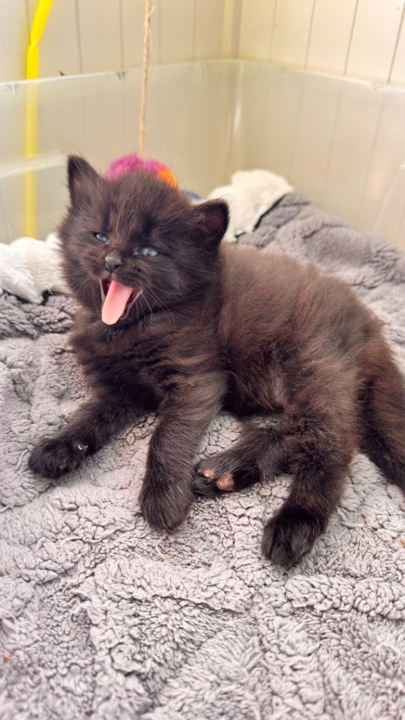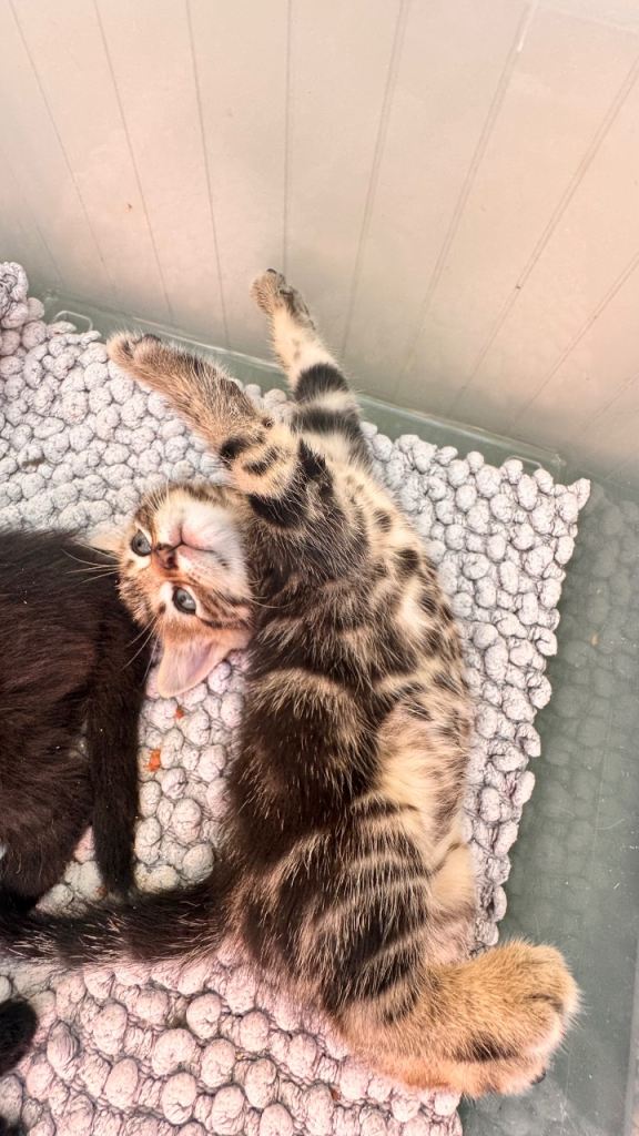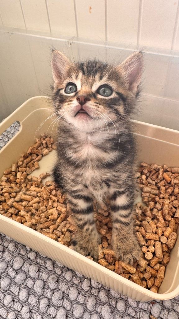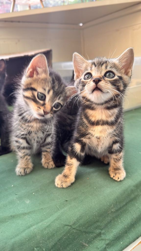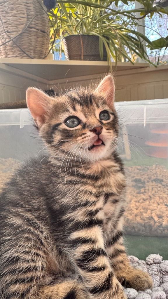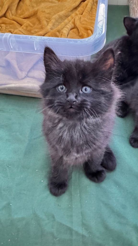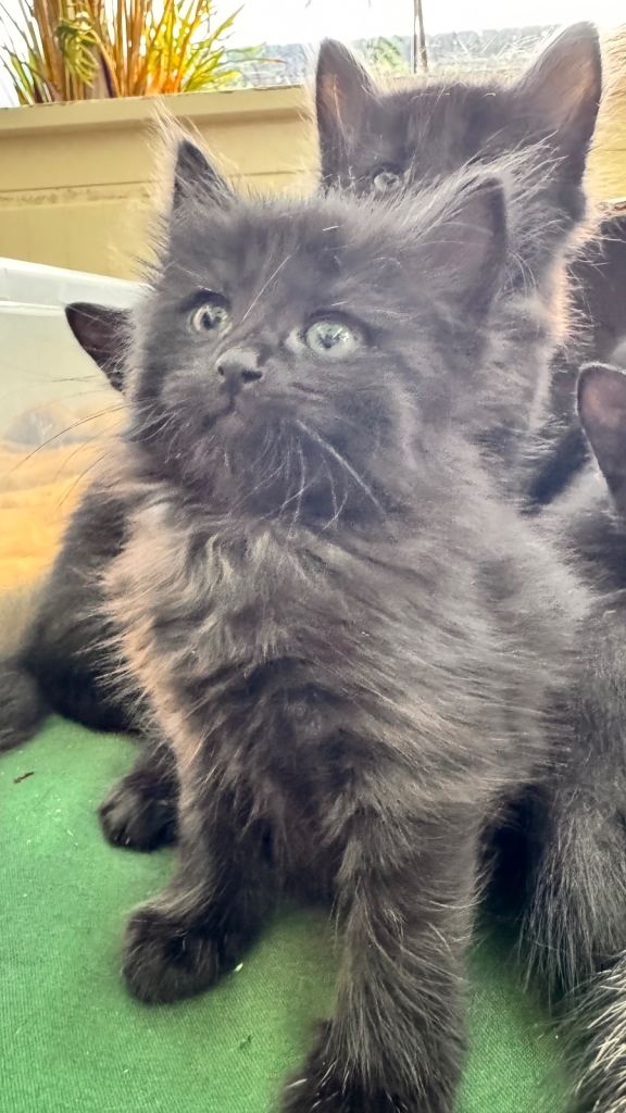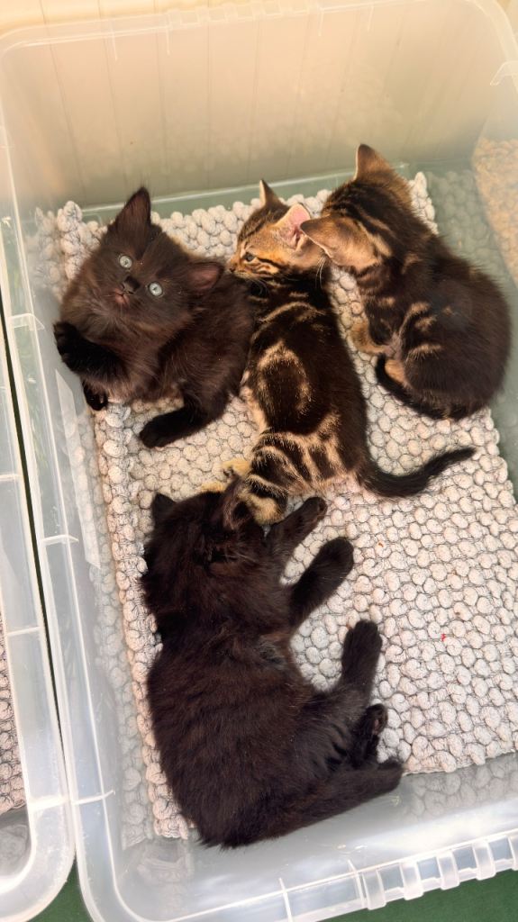 Hi we have 8 beautiful kittens. They were born 28/02/2026. Kittens are 6 weeks at the moment and already litter train. Started eating dry and wet food. Kittens are very playful and happy. Brought up in busy household with other cats. Good with kids. They are up to date with deworming treatments. They are beautiful three tabby boys (£250), two shorthair black female kittens (£150), two long hair black kitten male with grey markings (£350) and one longhair black female kitten (£300). Kittens will be ready to leave when fully independent and eating well (around 25/04/26). If you want to see them please let me know and we can arrange viewing. Non refundable deposit of £50 will be required if you want to reserve any kittens. I will be adding more pictures and videos in due course.