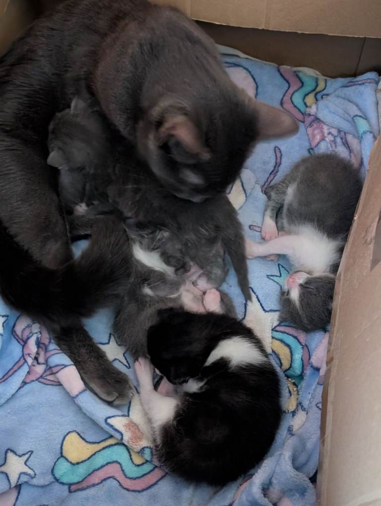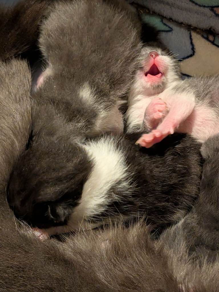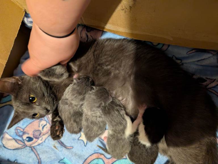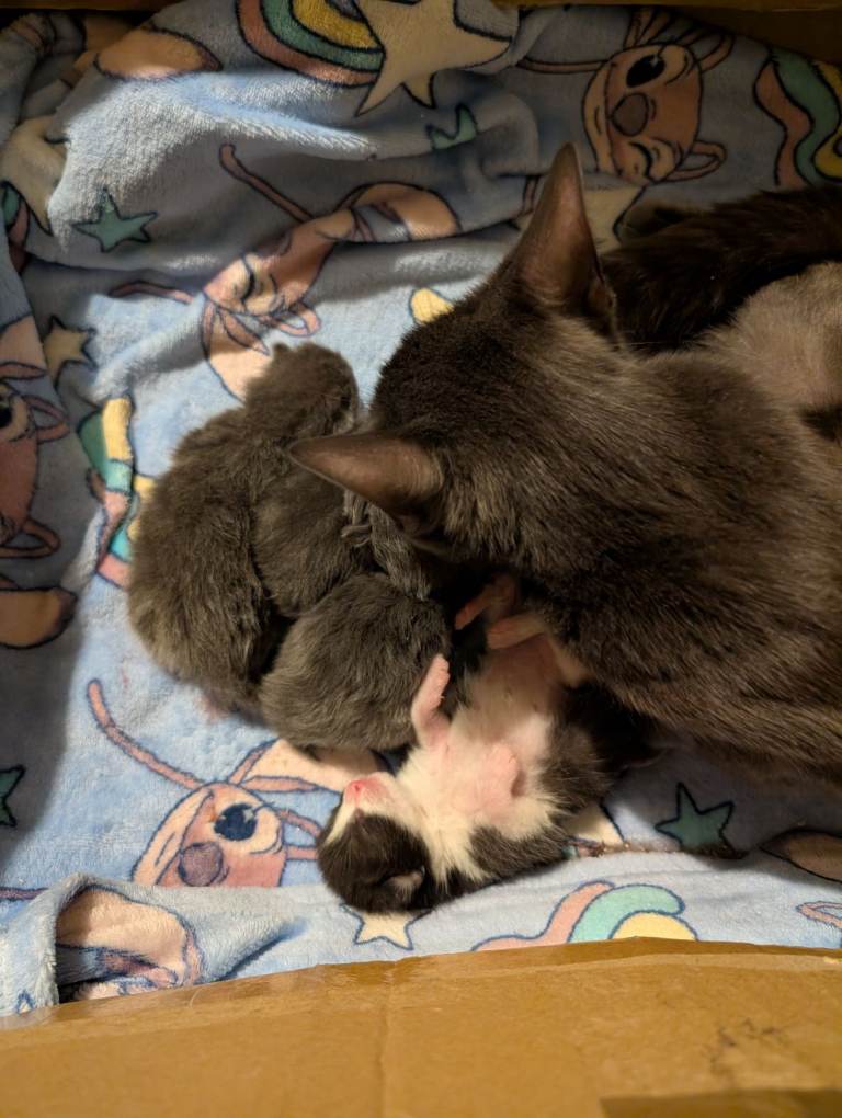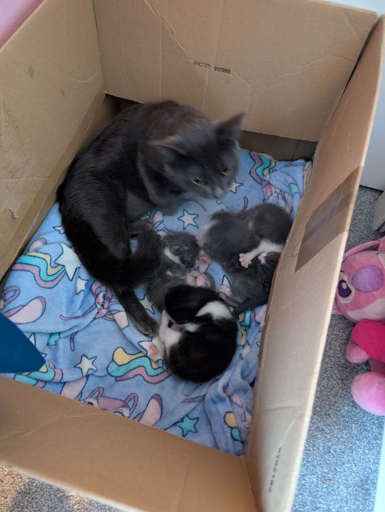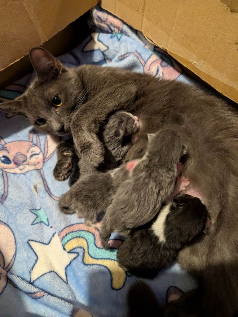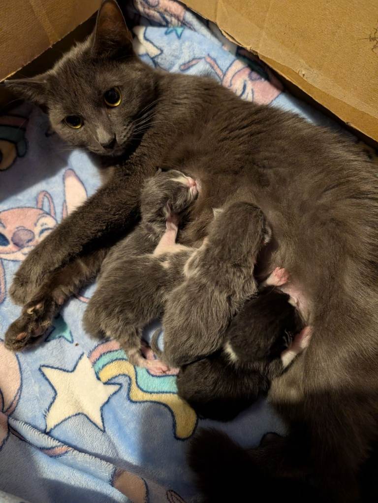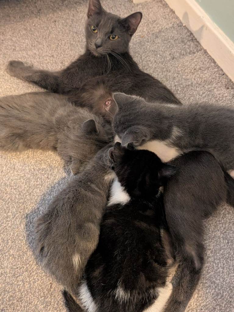 Mum is our beautiful grey cat Bluey, she is a much loved member of the family and has a beautiful soft coat and gorgeous colour!