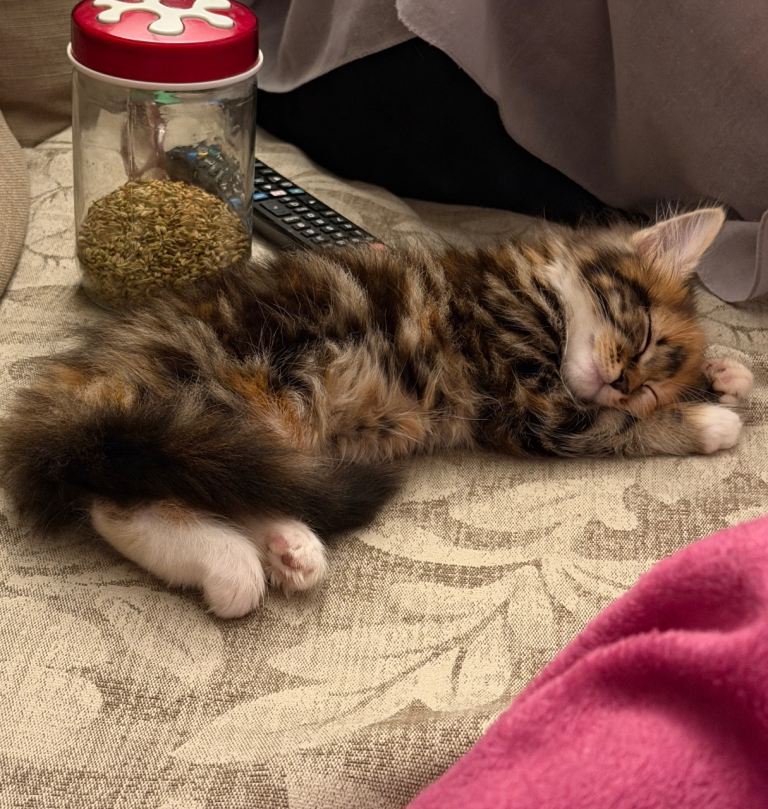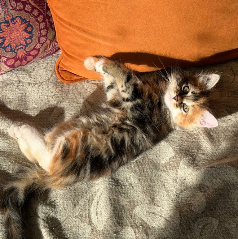 We have a gorgeous 9-week-old (ready to leave now) calico long-haired kitten looking for her forever home 💕