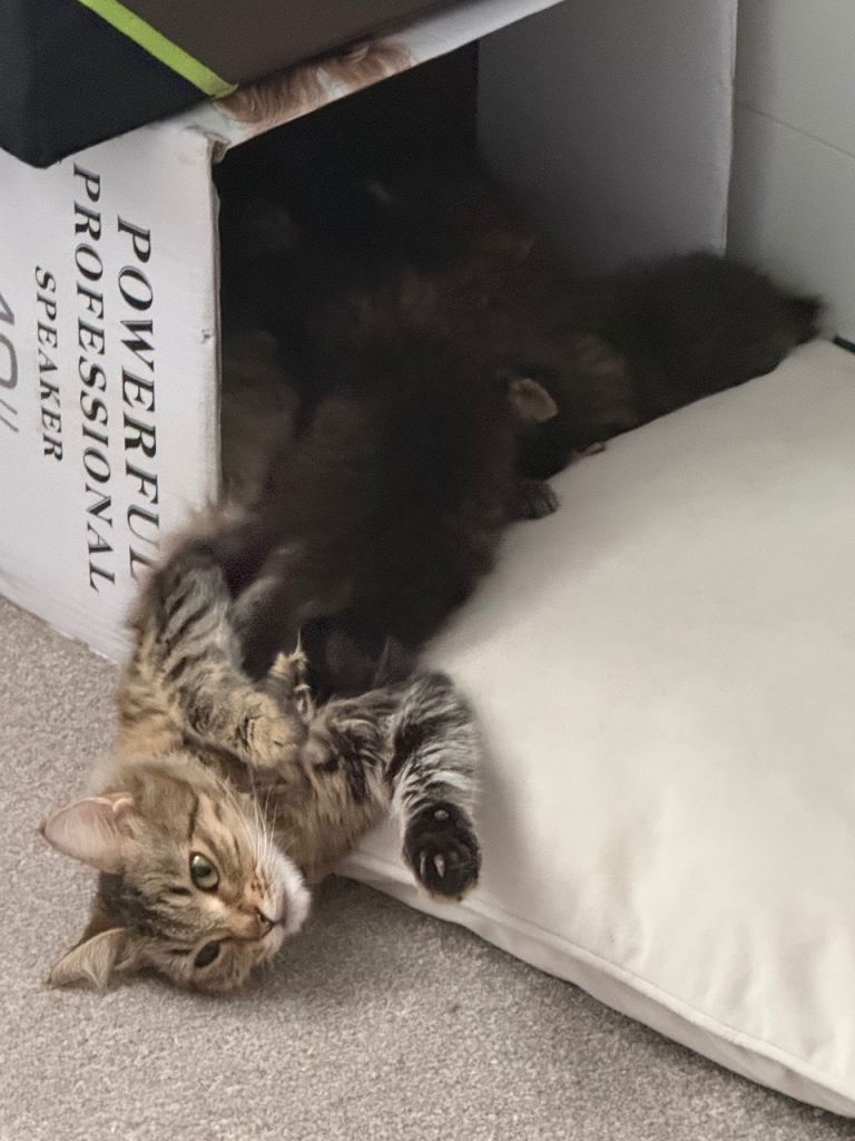 Their dad is a stunning Maine Coon and their mum is a beautiful Scottish wild mix, making them a truly unique and lovely combination. This is not our first litter we kept kittens from the previous one but sadly our home isn’t big enough to keep them all, so we are now looking for the perfect families for these two little ones.