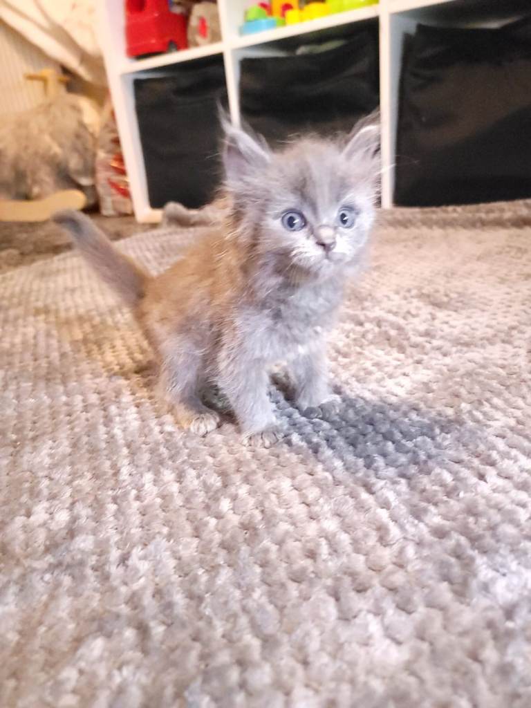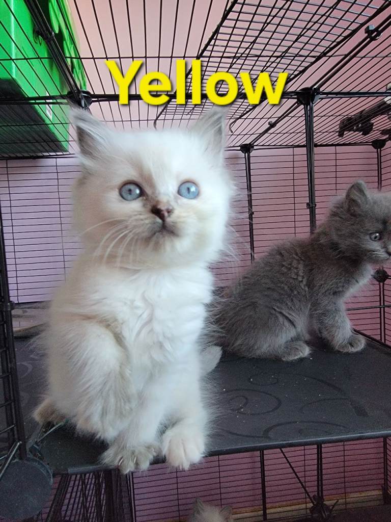 These kittens are a stunning mix of 75% Ragdoll and 25% Maine Coon, combining the affectionate, gentle nature of the Ragdoll with the impressive features of the Maine Coon.