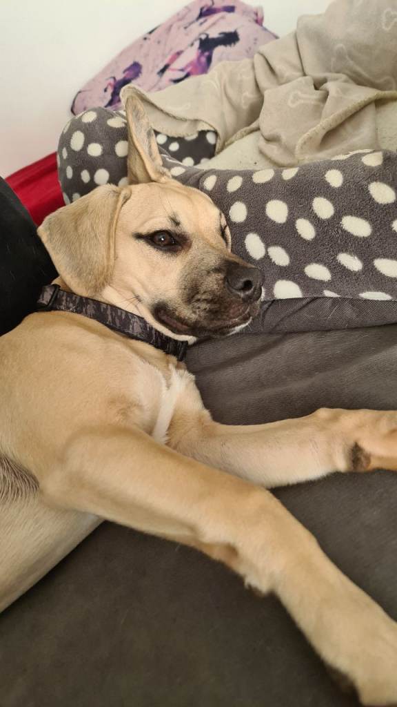 She is 11 months old, female, and fully neutered. She is litter trained, healthy, and very well cared for. She has a lovely temperament and is happy being indoors or outdoors. She is also used to dogs and is comfortable around them, once she gets to know them.
