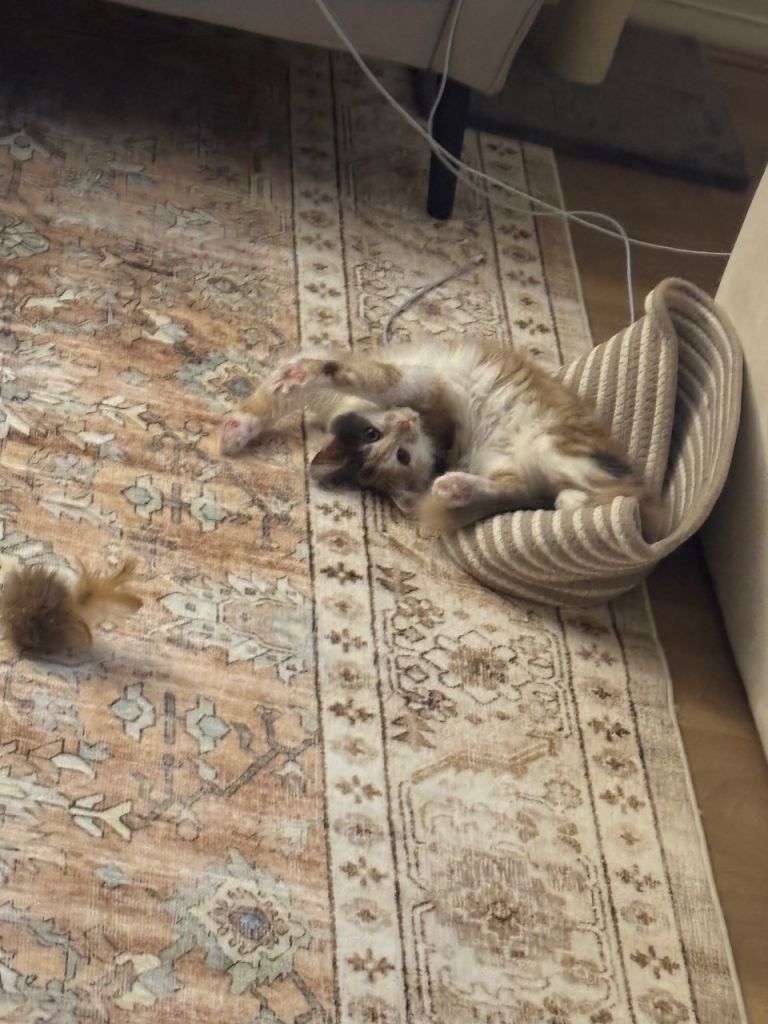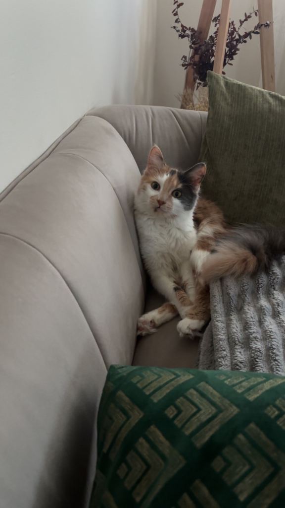 Her name is Mila, she is a 1 year old beige coloured calico cat. She is spayed, vaccinated, microchipped and fully cared for. Mila is incredibly sweet, friendly and cuddly. Unfortunately, due to my very busy schedule with university, and balancing 2 jobs, it is very difficult to give her to proper attention she needs. Hence, I am looking to rehome her to a loving home who can give her attention and play as needed and deserved.