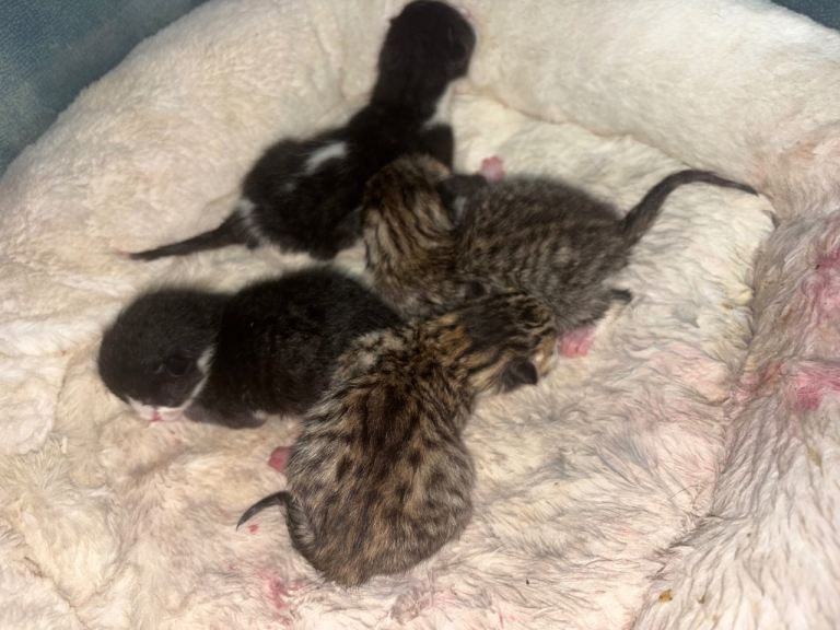 • 2 kittens that have taken after mum, showing more distinctive Bengal patterning