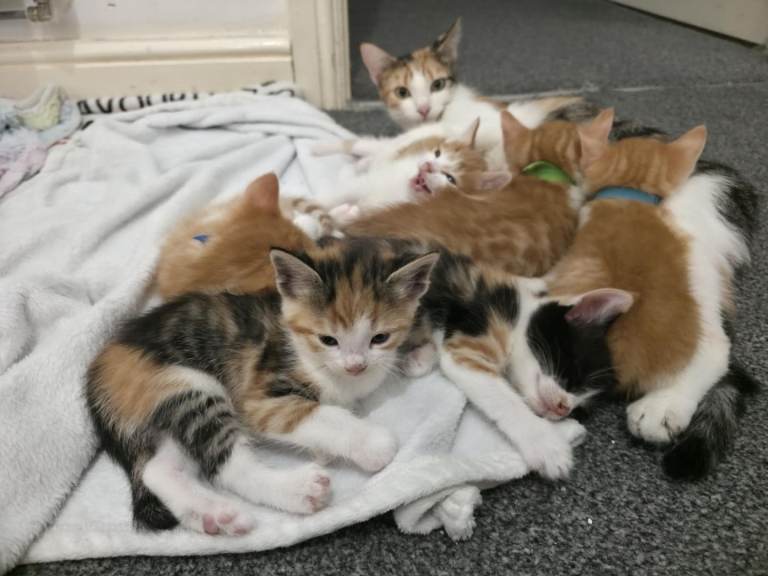 All being trained currently for wet and dry food and litter trained.