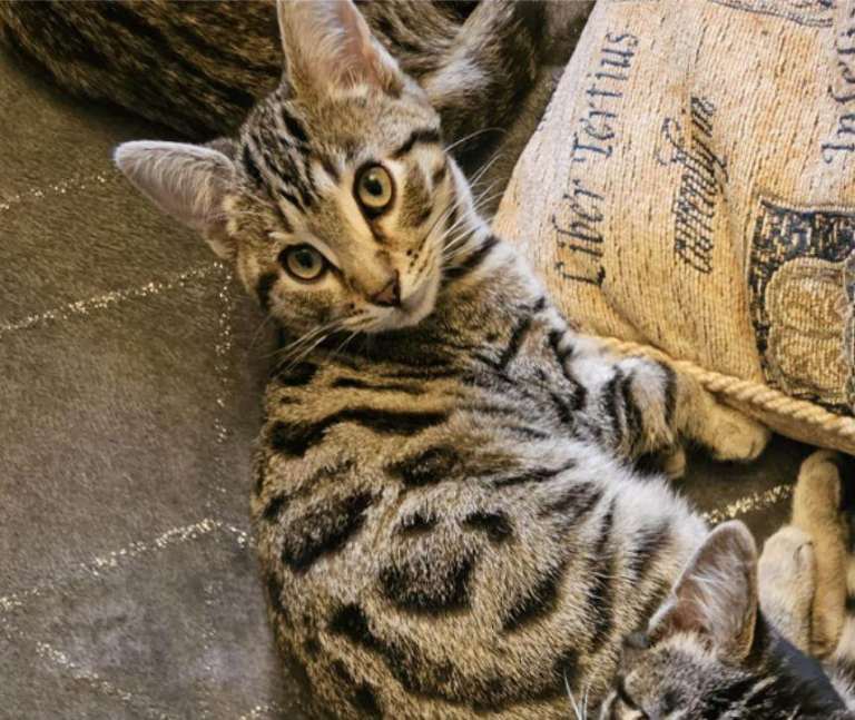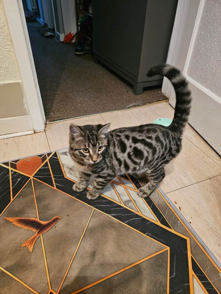 A wonderful Bengal boy, ready for his new home. Litter trained, eats wet and dry food. Cheerful and friendly. Dad is silver.