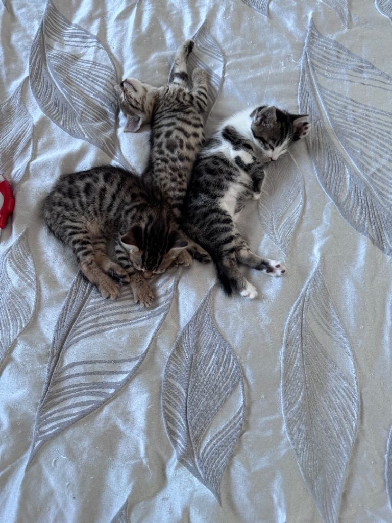 not sure whether two are full bengal or not , but both are full spotted , one male and one female.