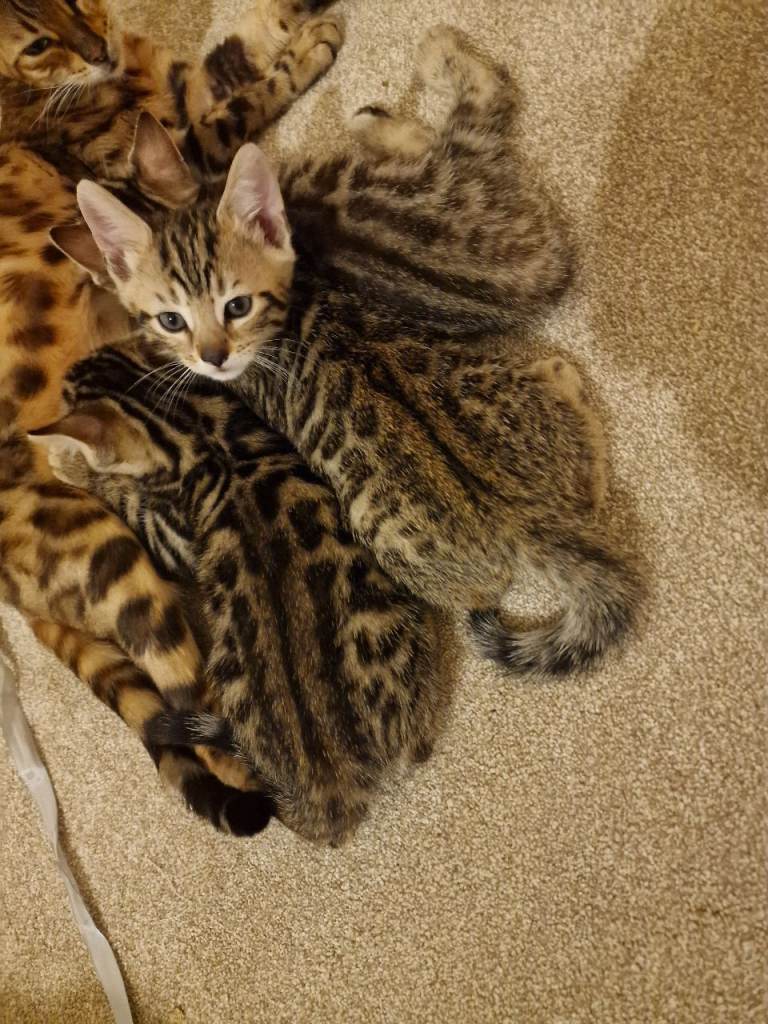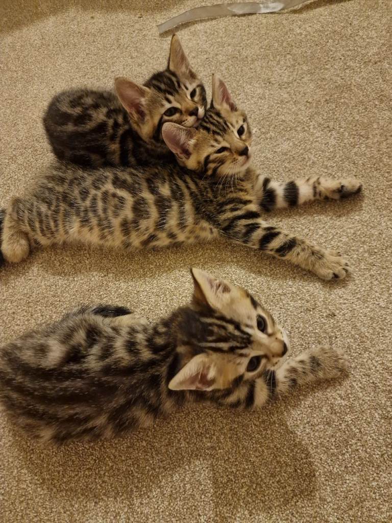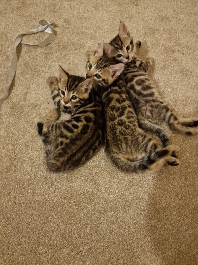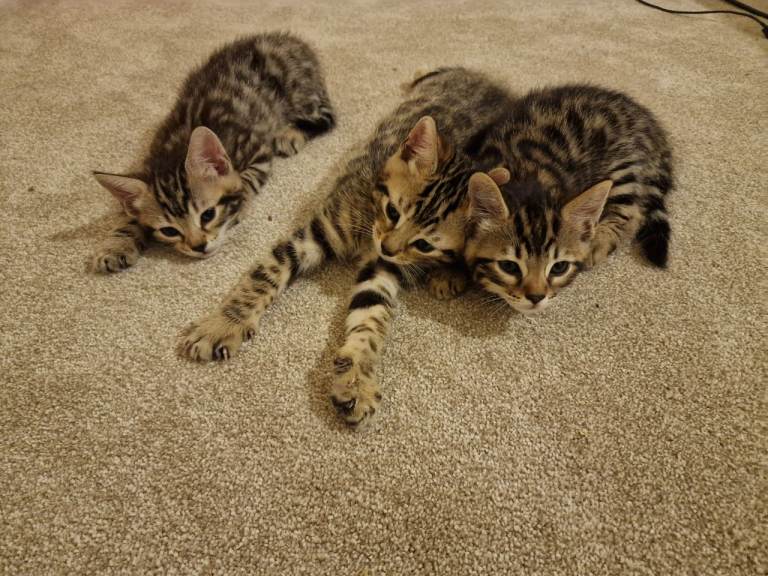 I have 3 beautifull half bengal kittens, 8 weeks old, ready to find their new home!