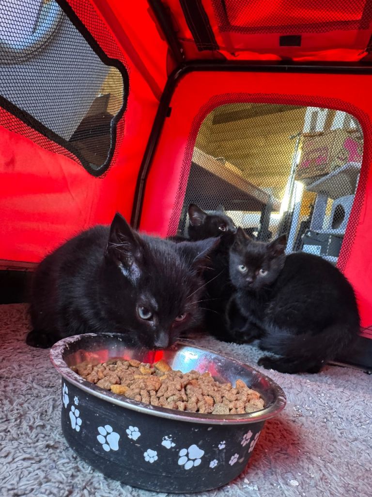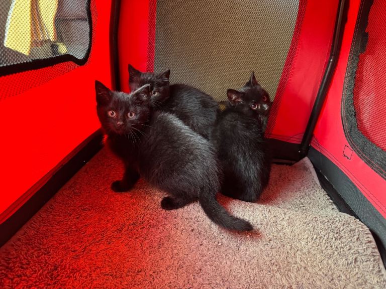 We have three beautiful black kittens looking for their forever homes — two females and one male. All three have glossy black coats, bright eyes, and the sweetest personalities.
