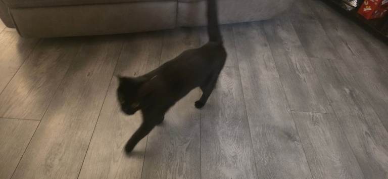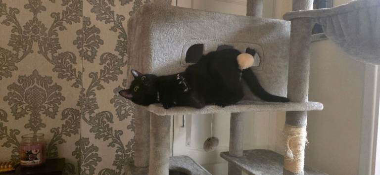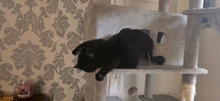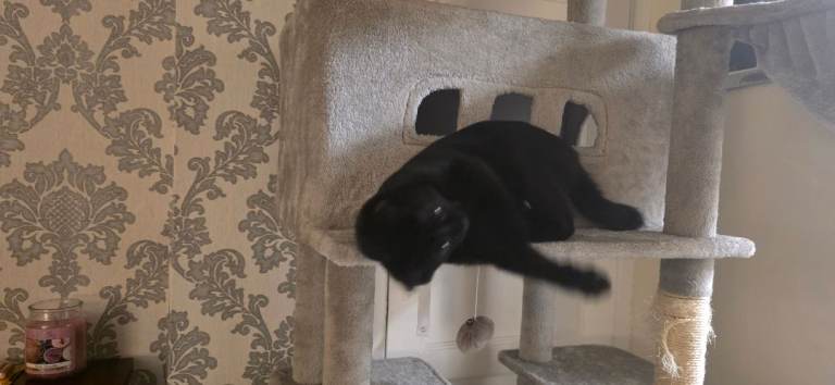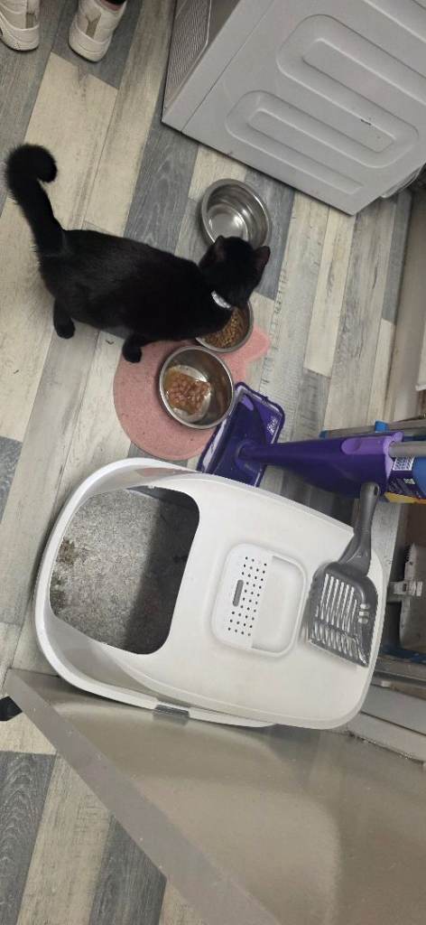 Black with a little white cat called Daisy under 1 year old, very lovely, playful and house cat, its up to date with injections, has been micro chipped, updated with fleeing and worming, got everything you will need and more, extra large scratcher, a small scratcher, toys, play tunnel, litter box, food, bowls and carry case.. all comes with the cat..Just having got the time and feels like she home alone alot so would love it if she can to a loving home