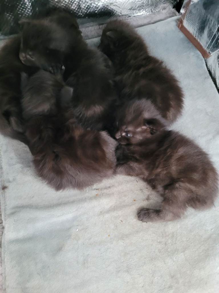 We have 5 beautiful black kittens, available 3 females and 2 males, reserve is £20 non-refundable on visit and £70 on collection