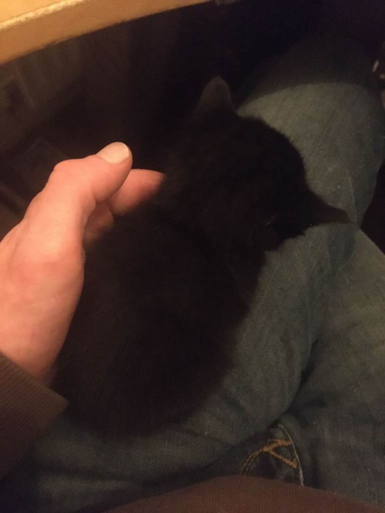• One jet-black kitten – this one is staying with us as he's small and under special care.