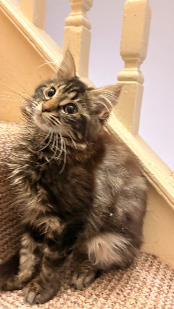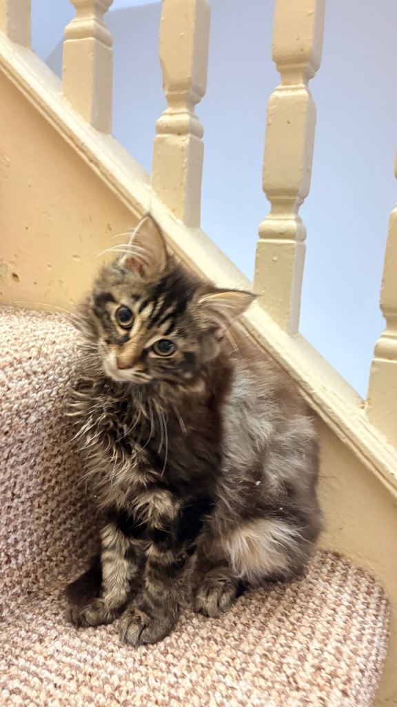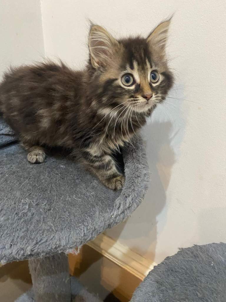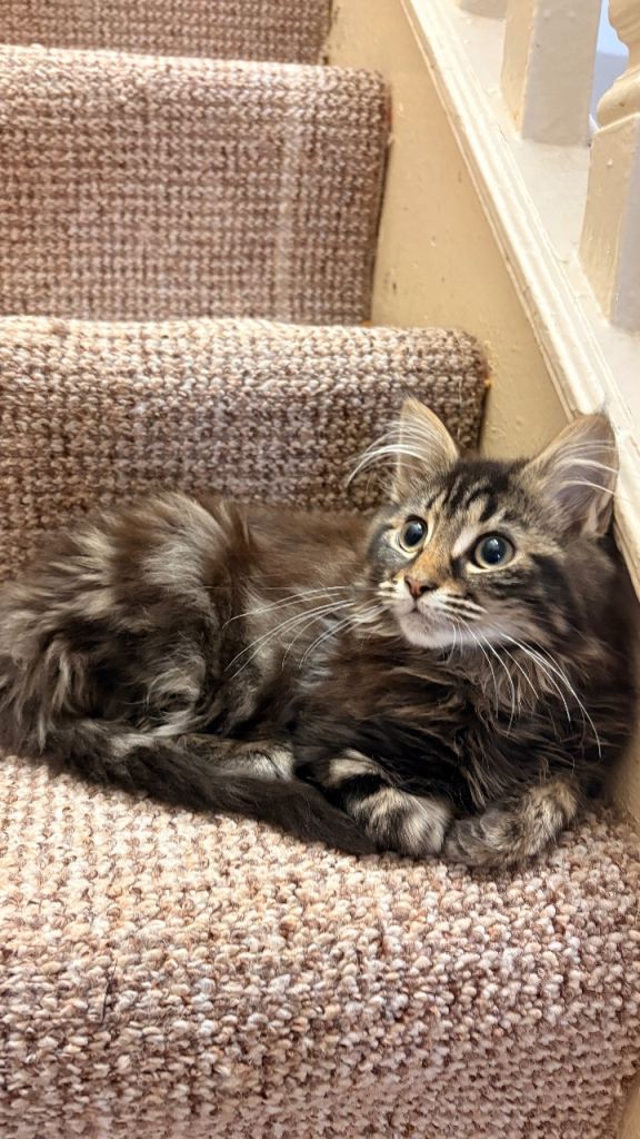 She is a very playful, affectionate, and curious little kitten with a gorgeous long coat and bright, expressive eyes. Boba loves to explore, climb, and cuddle up after a good play session. She has a sweet personality and is already showing great confidence around people.
