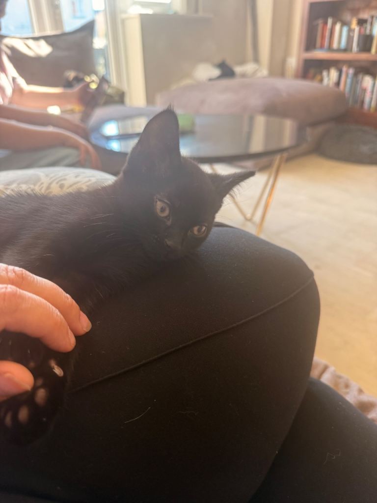 Our gorgeous mixed breed black boy kitten is now ready to find his loving forever home. He has been raised in a warm, busy household and is well-socialised, confident, and full of personality.