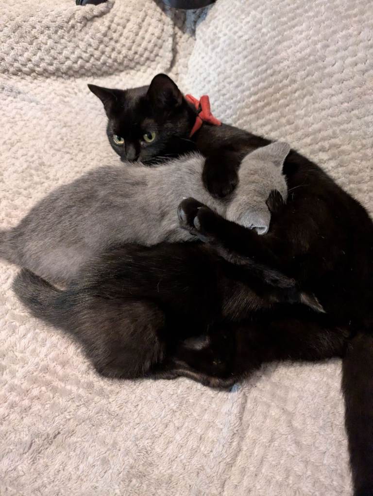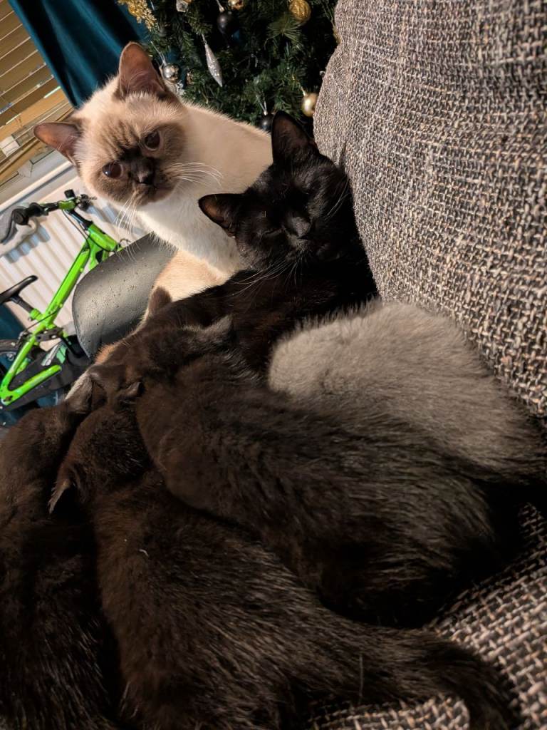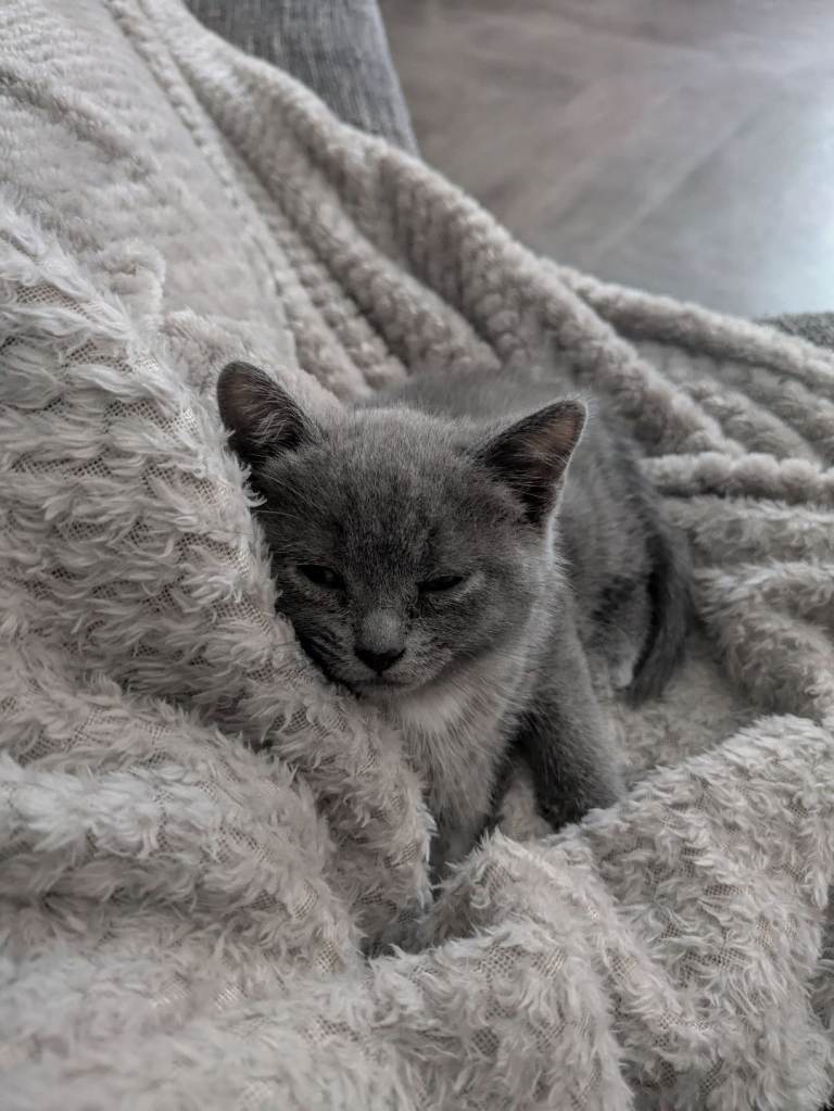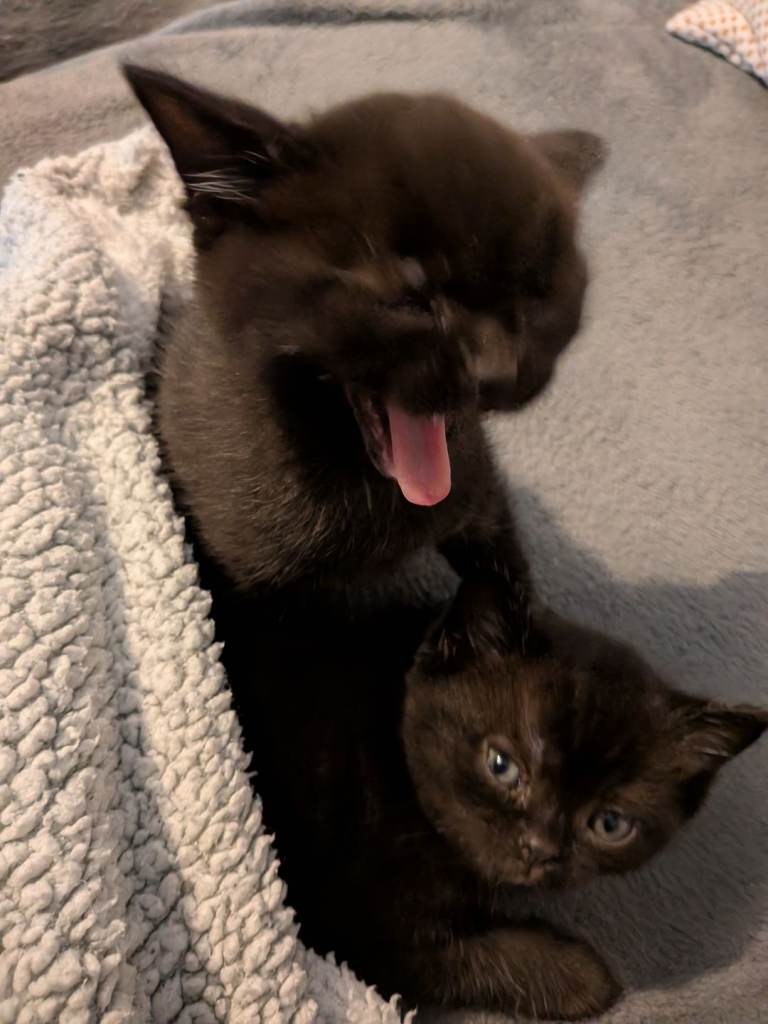 4 Bsh kittens looking for a loving home . Very friendly, playful ,good with kids ,2 boys and 2 girls .