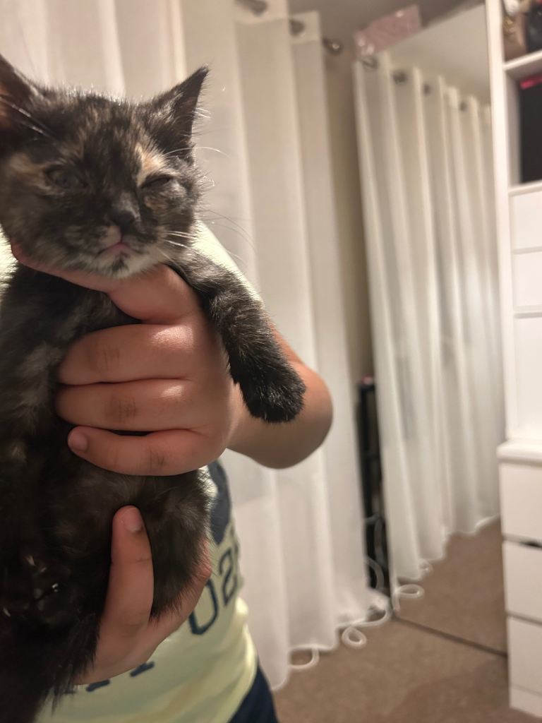 Last small female kitten from litter , mum is my cat British short hair and dad is neighbours cat domestic cat